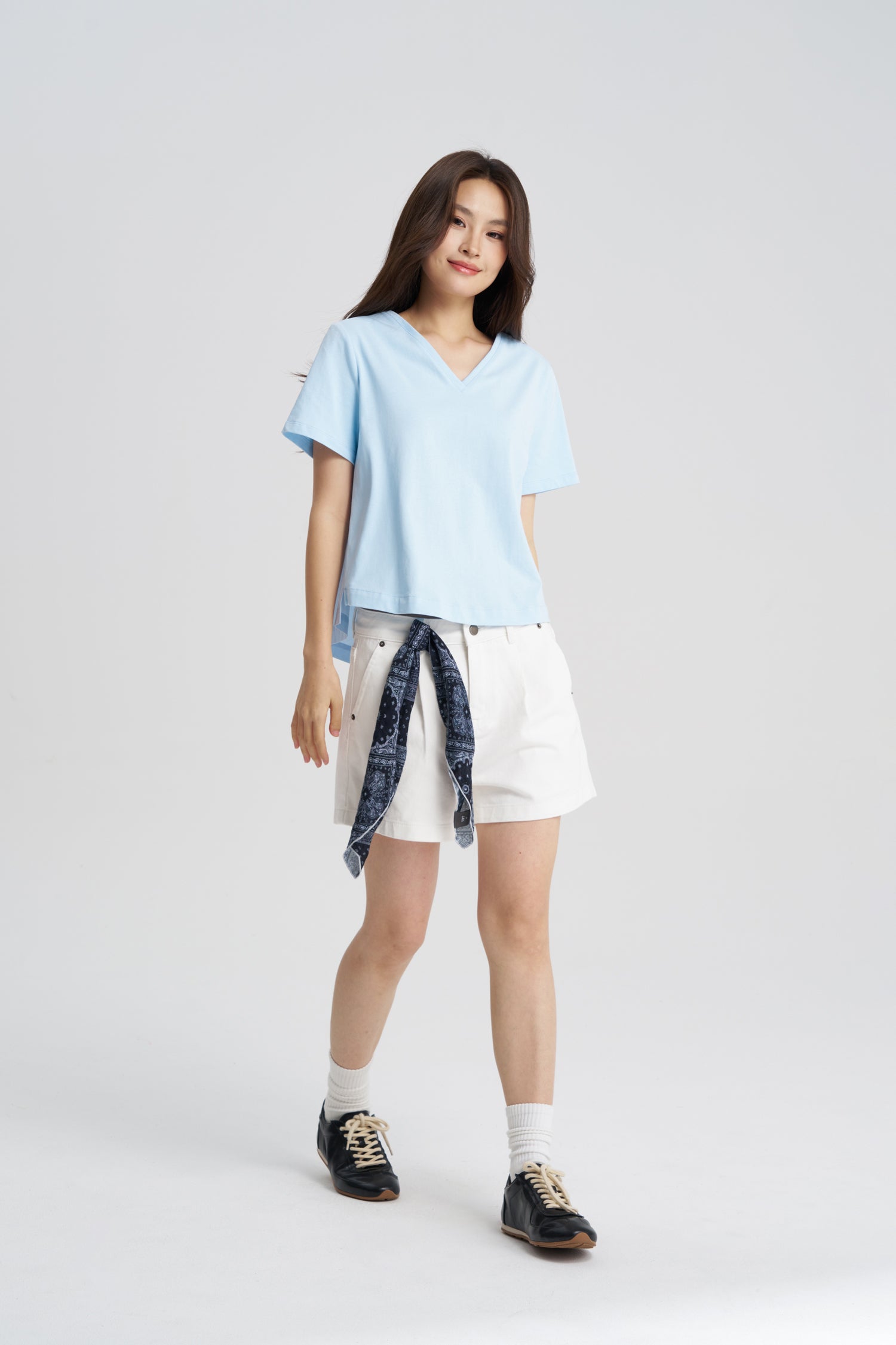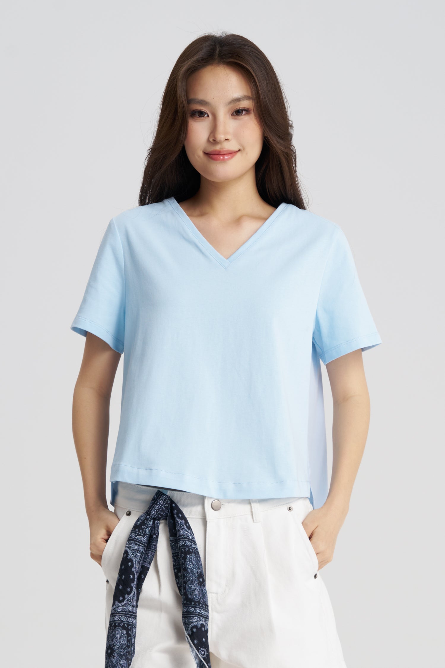 Elevate your everyday essentials with our Back Gathers V-Neck Tee — a modern twist on a classic silhouette. Crafted with a soft, breathable jersey front and a cotton poplin back, this tee blends comfort with unexpected detail. The relaxed V-neckline flatters effortlessly, while the gathered detailing at the back adds volume and movement for a contemporary edge. Perfect for casual days or dressed-up layering, this tee brings easy sophistication to any look.