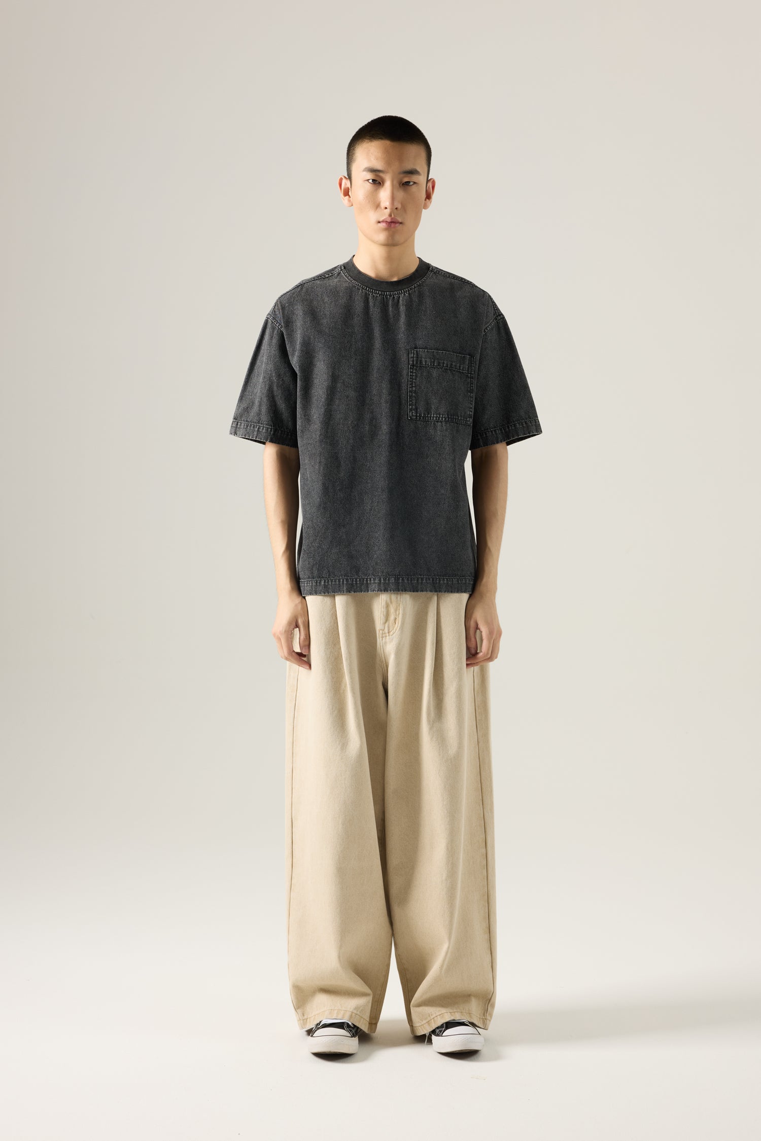 Cut in a relaxed barrel silhouette, these denim trousers feature durable twill fabric with a curved leg that tapers to a clean, modern finish.