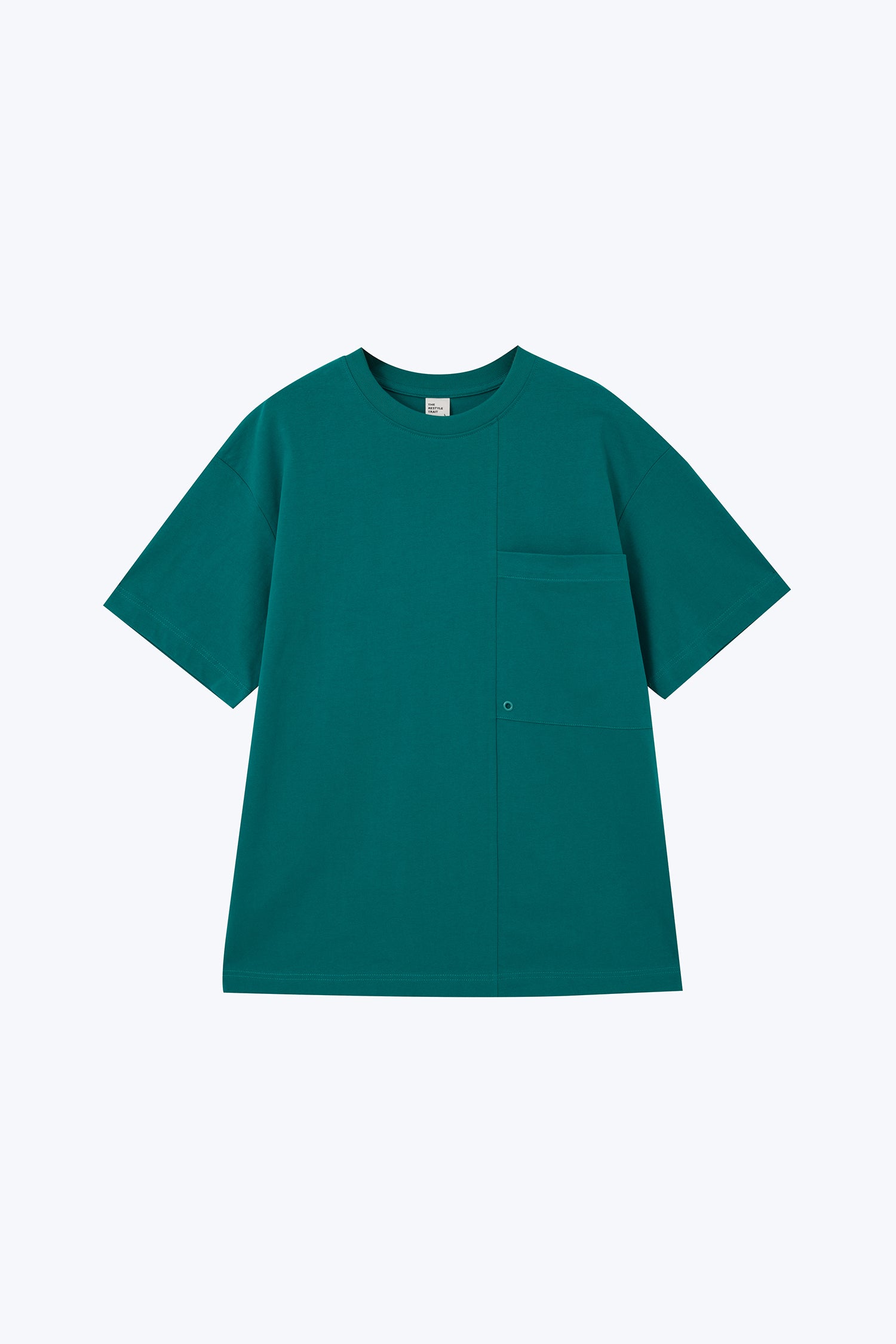 Made from soft cotton jersey, this tee features an oversized cut with subtle panel detailing and a functional chest pocket. Easy to wear on its own and pairs effortlessly with denim or casual bottoms.