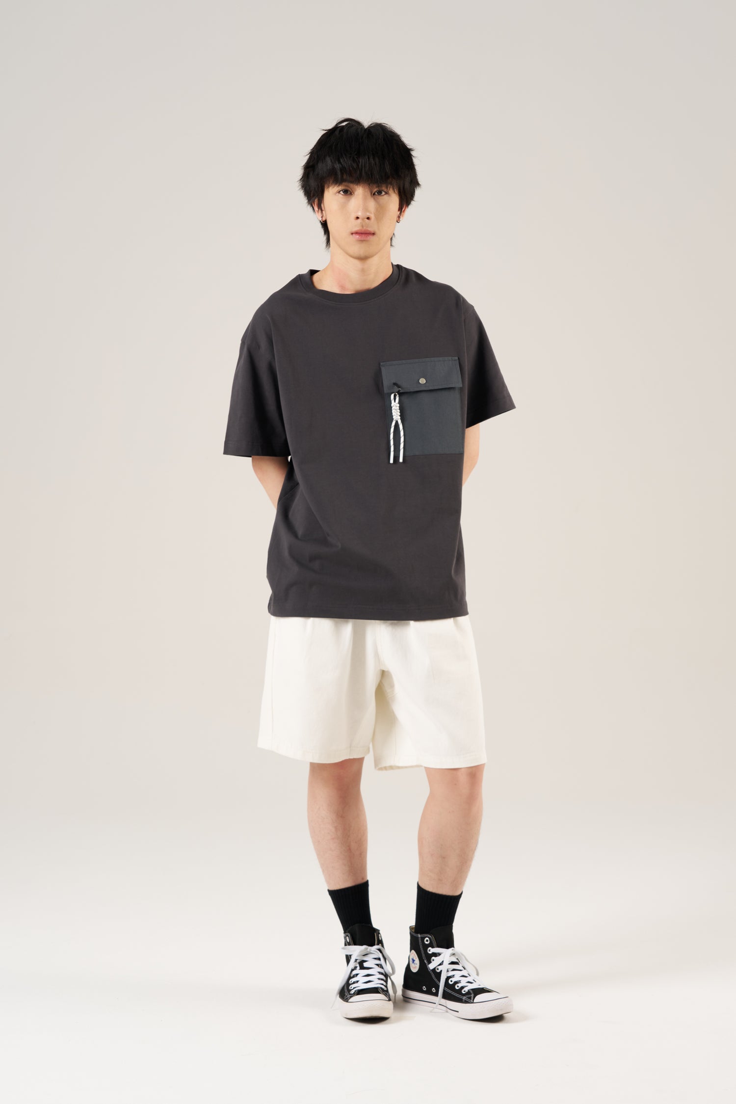 (C) Oversized Utility Pocket Tee - Charcoal