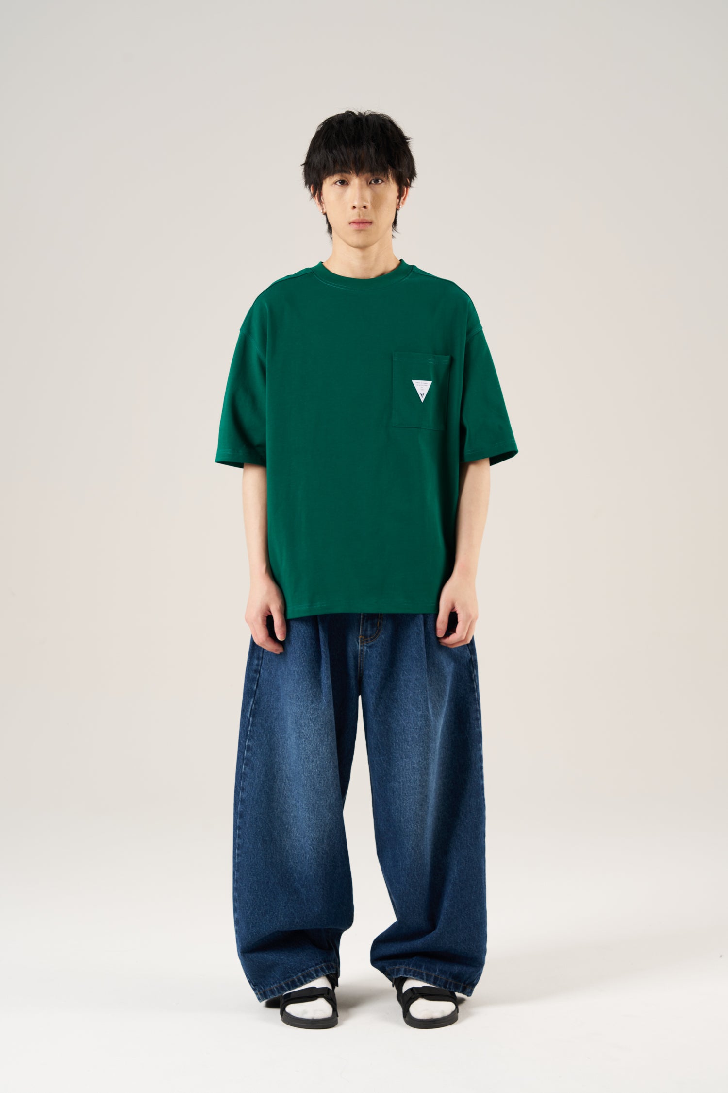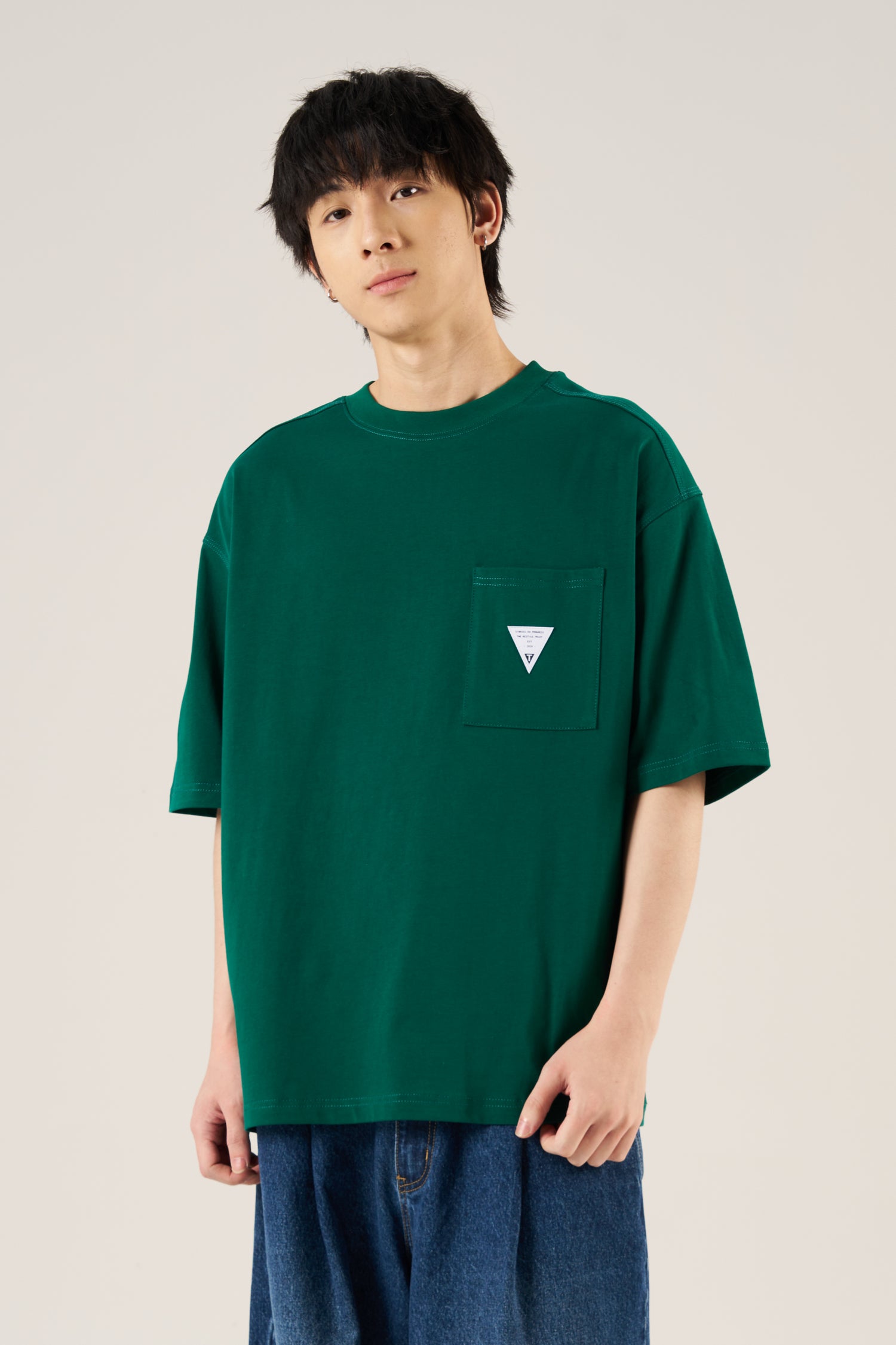 A structured tee featuring side cutline detailing and a patch pocket with label. Clean lines and subtle detailing for everyday wear.