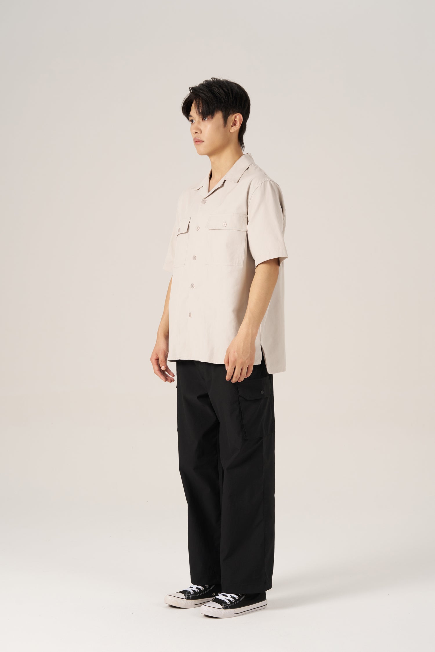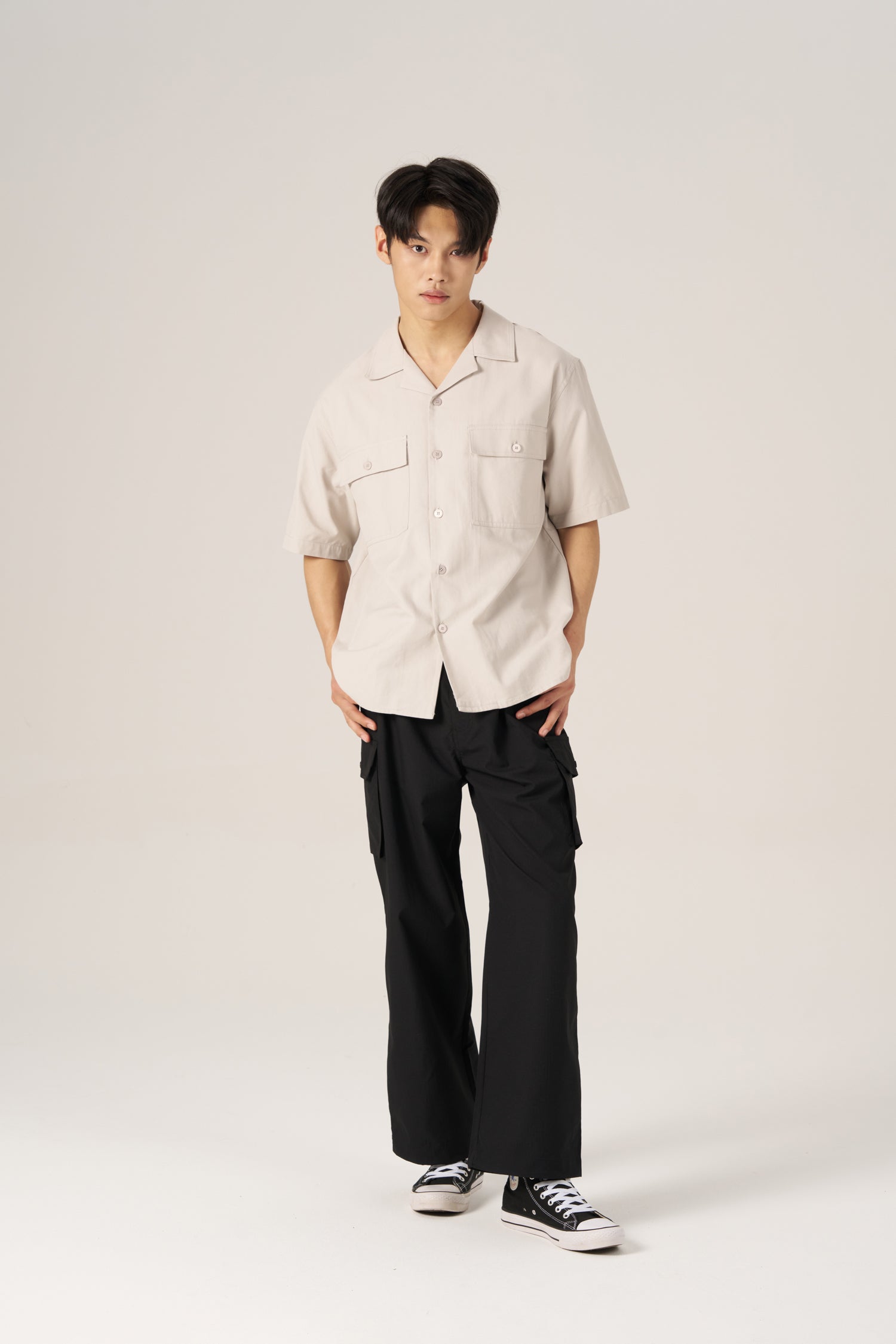 Lightweight cargo pants made from durable ripstop fabric, designed with a relaxed fit, adjustable belt, and functional side pockets. A comfortable everyday style with a utility edge.