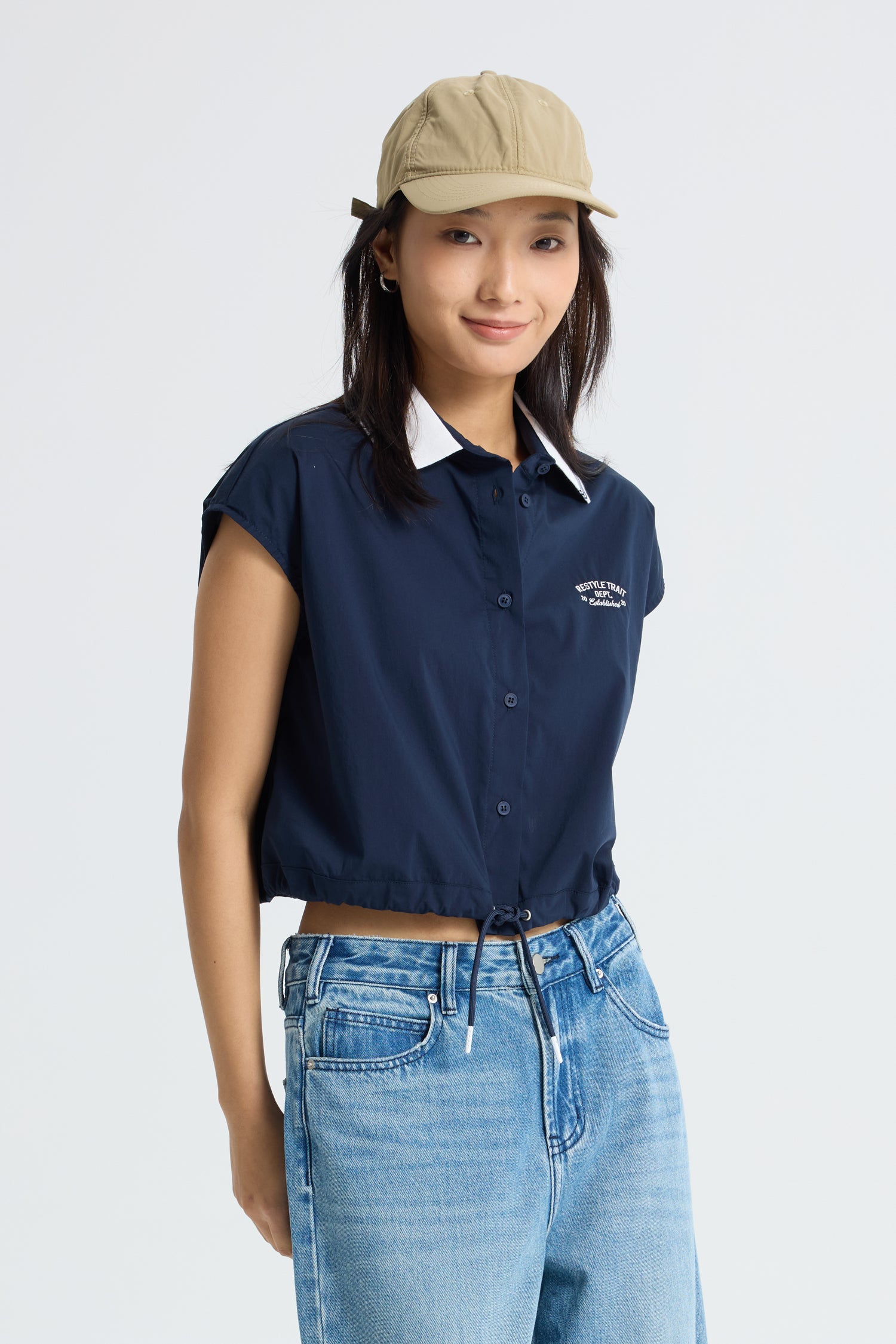 Featuring a ribbed contrast collar, this blouse adds a bold pop of style to your everyday wardrobe. The bold striped pattern brings a touch of structure and visual interest, while the drawstring at the hem allows you to personalise the fit, adding a relaxed yet flattering silhouette that can be adjusted for comfort or style. Whether you choose to wear it untucked for a laid-back vibe or cinch it at the waist for a more tailored look, this versatile piece effortlessly elevates your wardrobe.