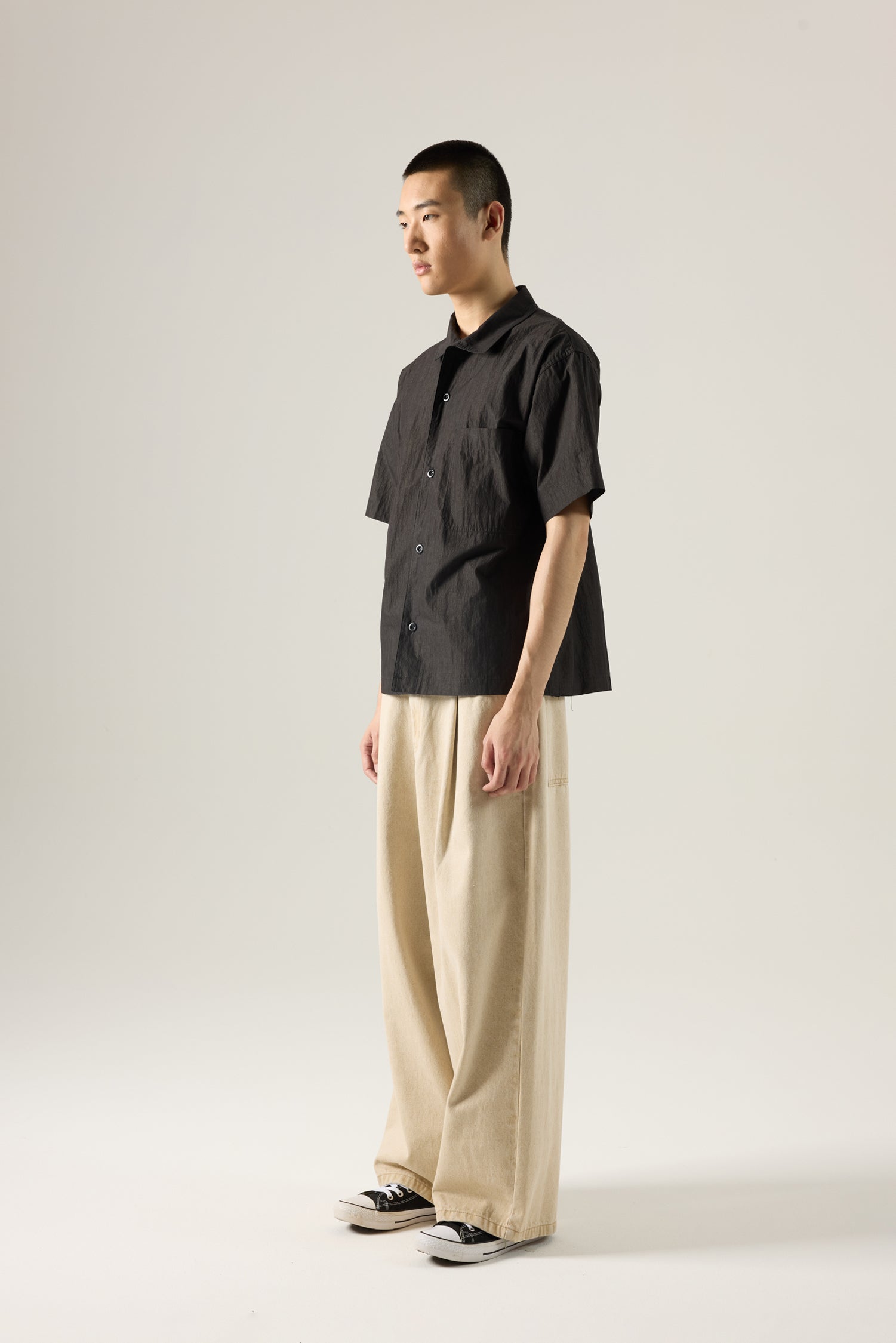 This classic short-sleeve button-down features a point collar and chest pocket, perfect for versatile styling and light layering.