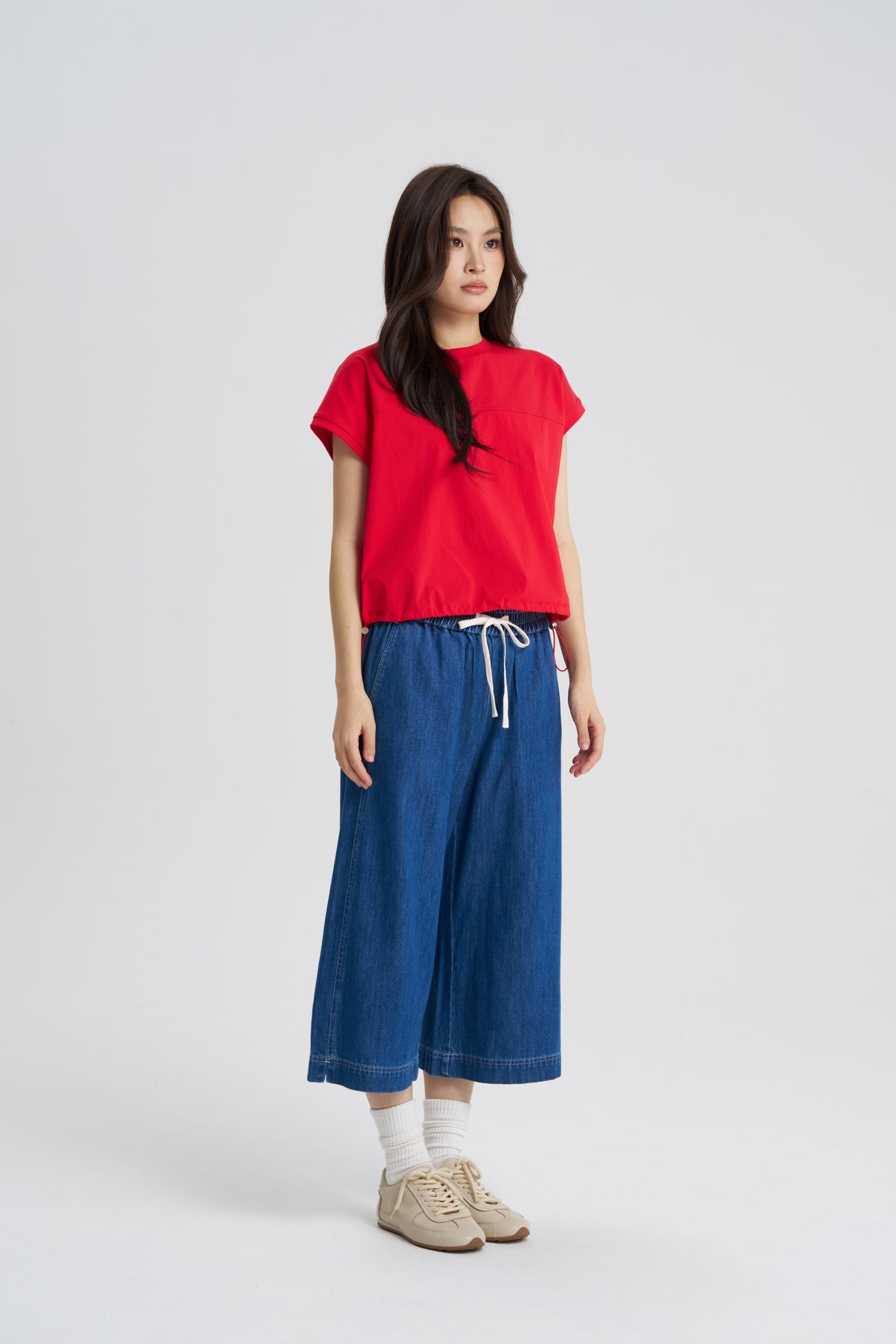 These denim culottes feature a relaxed, contemporary silhouette with a comfortable drawcord elasticised waistband for an easy, adjustable fit. The wide-leg design adds a modern touch, making them versatile enough to pair with anything from a tucked-in blouse to a graphic tee for effortless, laid-back chic.