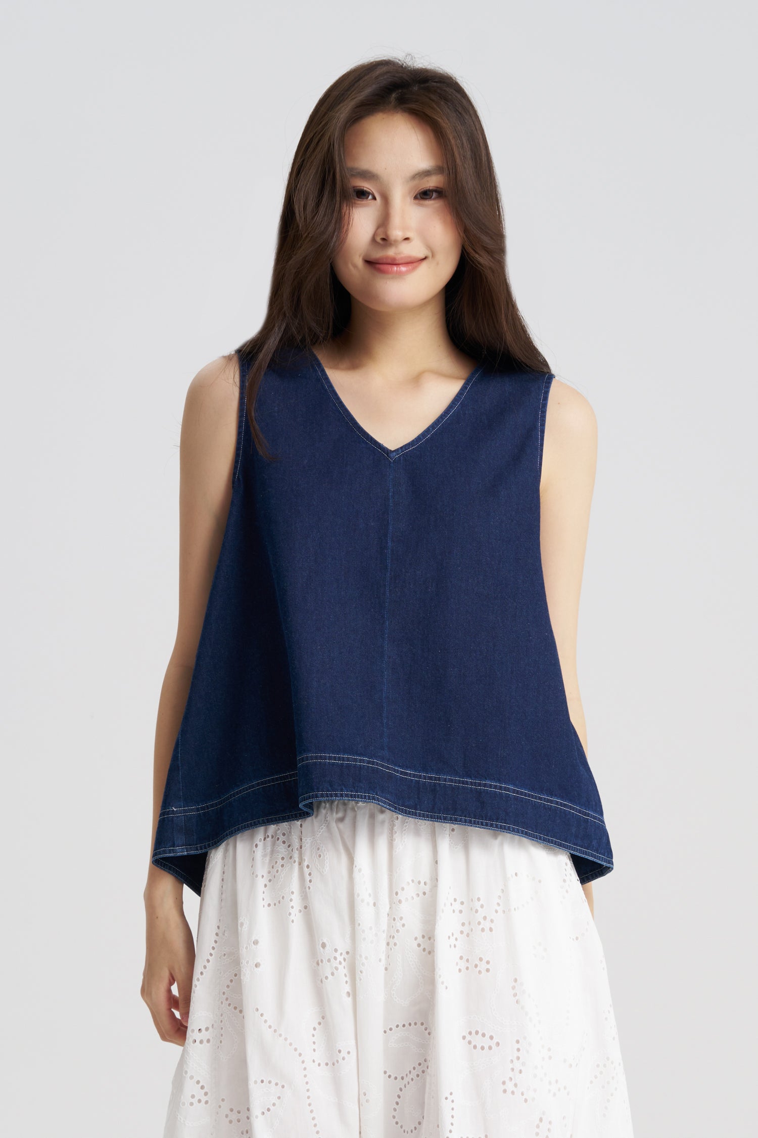 This Denim V-Neck Blouse is the effortlessly cool top you'll live in all season. The flattering neckline adds a touch of elegance, while the classic denim fabric makes it easy to style. Whether you rock in a set with a matching shorts for a sleek, coordinated look or mix and match with your favourite whites and linens, it’s the ultimate versatile duo for sunny days and warm nights.