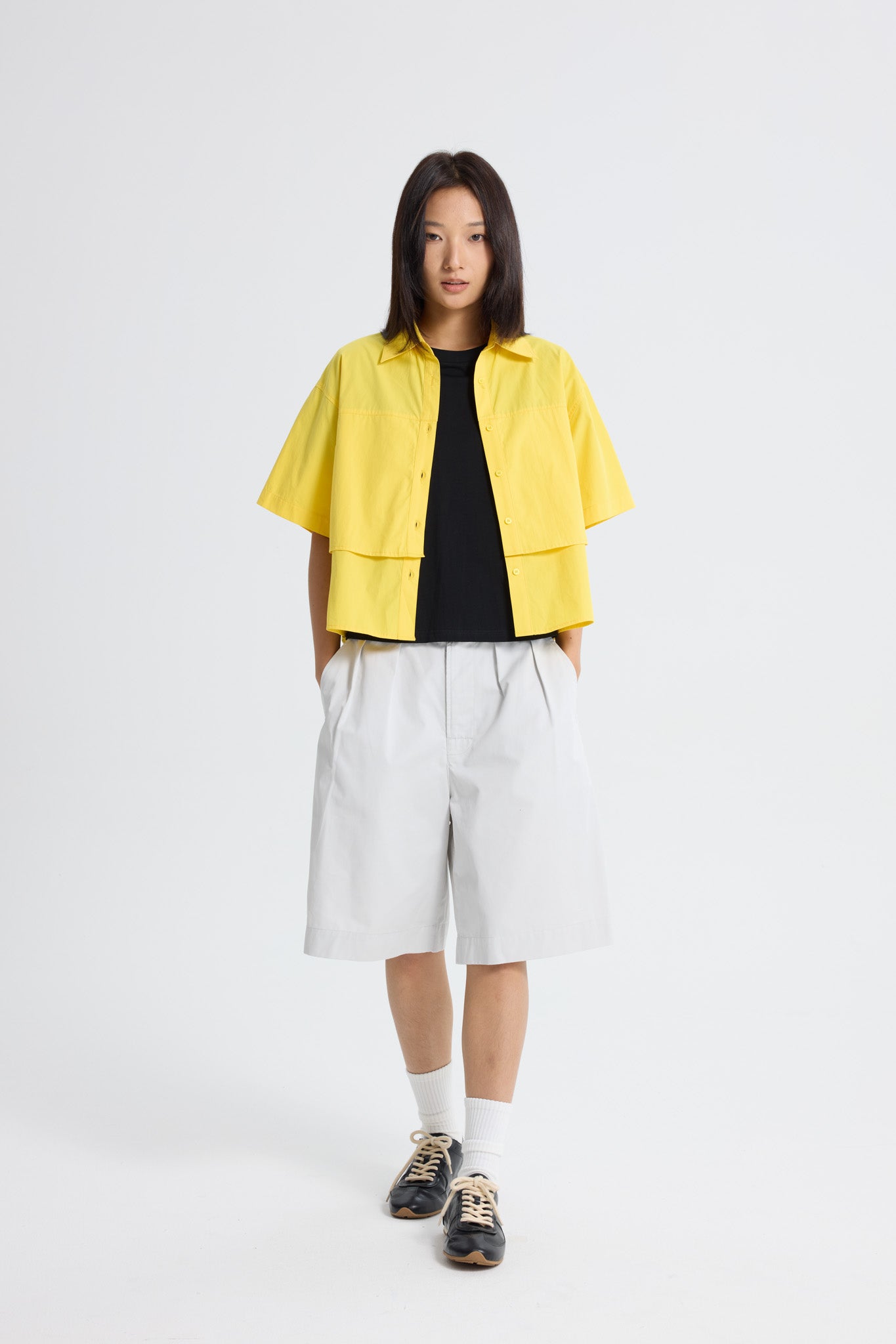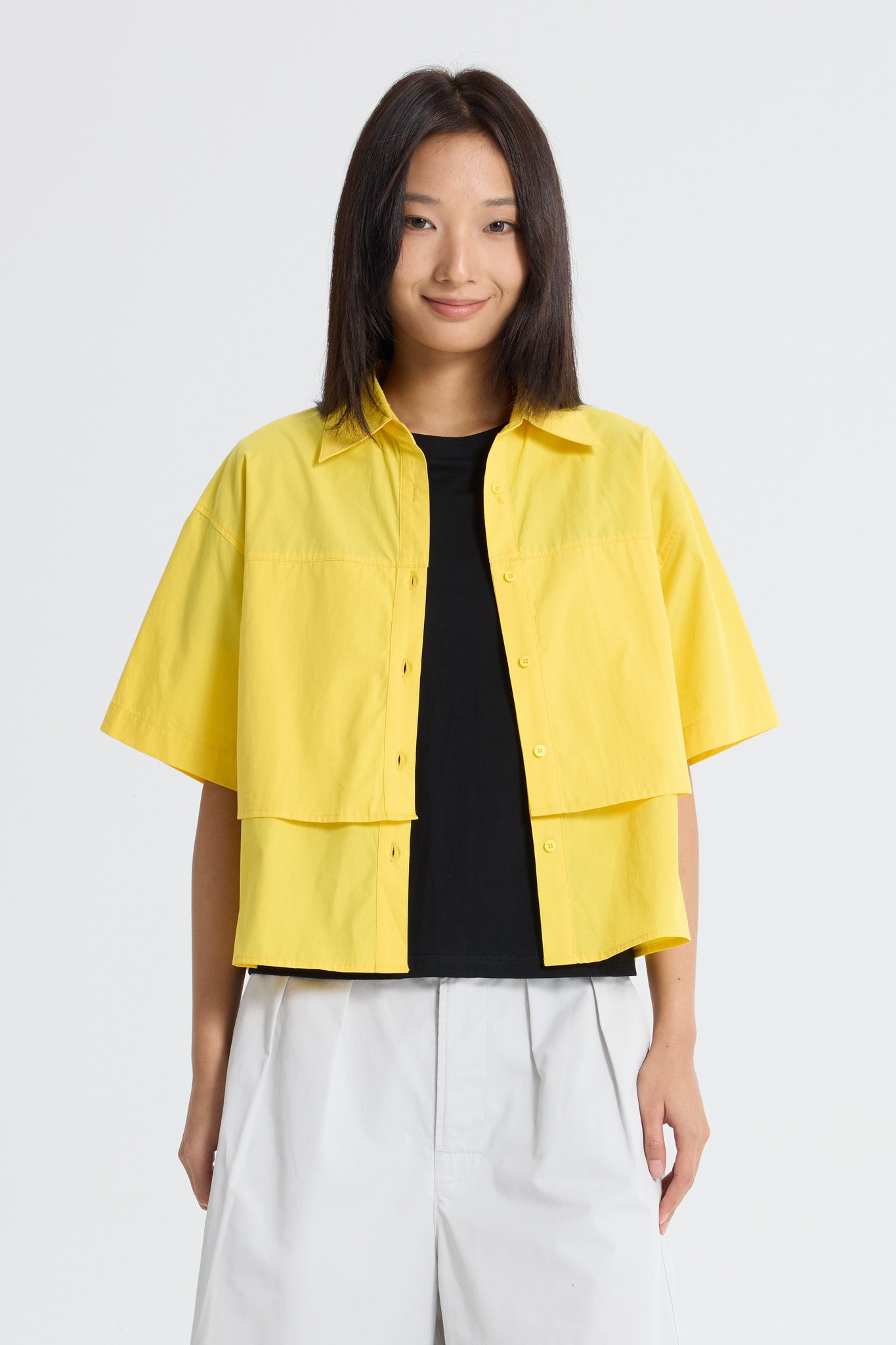 With its sophisticated design, this blouse features a flattering double layer that adds depth and dimension while maintaining a breezy, breathable feel. The versatility of the piece makes it perfect for pairing with denims, creating an effortlessly chic outfit that balances comfort and style. Whether you're dressing for work or a casual outing, this blouse is a timeless addition to your wardrobe.