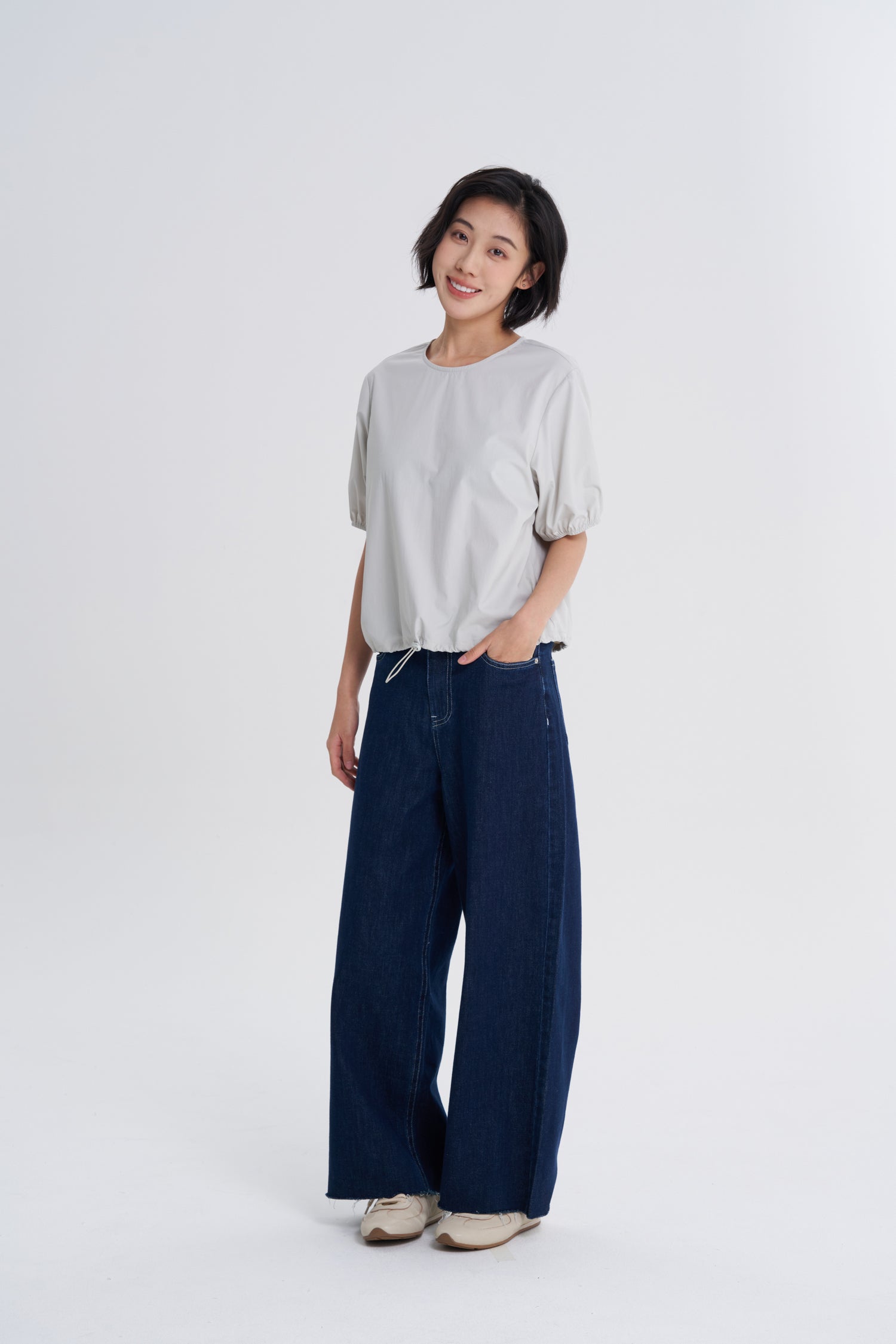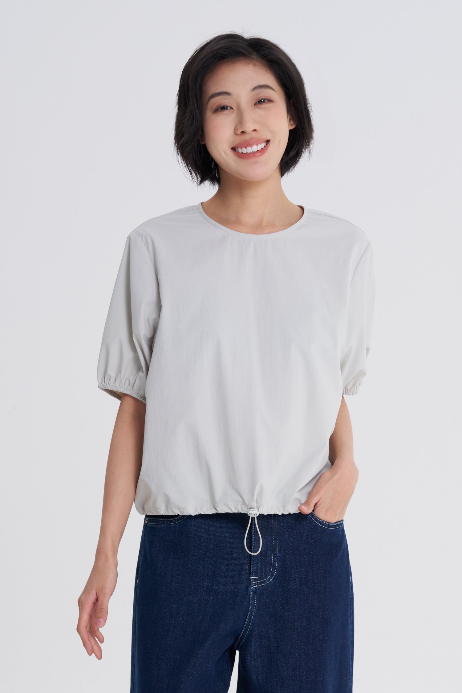 Casual comfort meets subtle structure in this versatile top, designed with elasticated sleeve cuffs and hem for a softly gathered finish. The gentle cinch at the waist and sleeves adds shape while maintaining a relaxed fit, making it an easy go-to for everyday wear. Pair it with jeans, skirts, or trousers for an effortlessly put-together look.