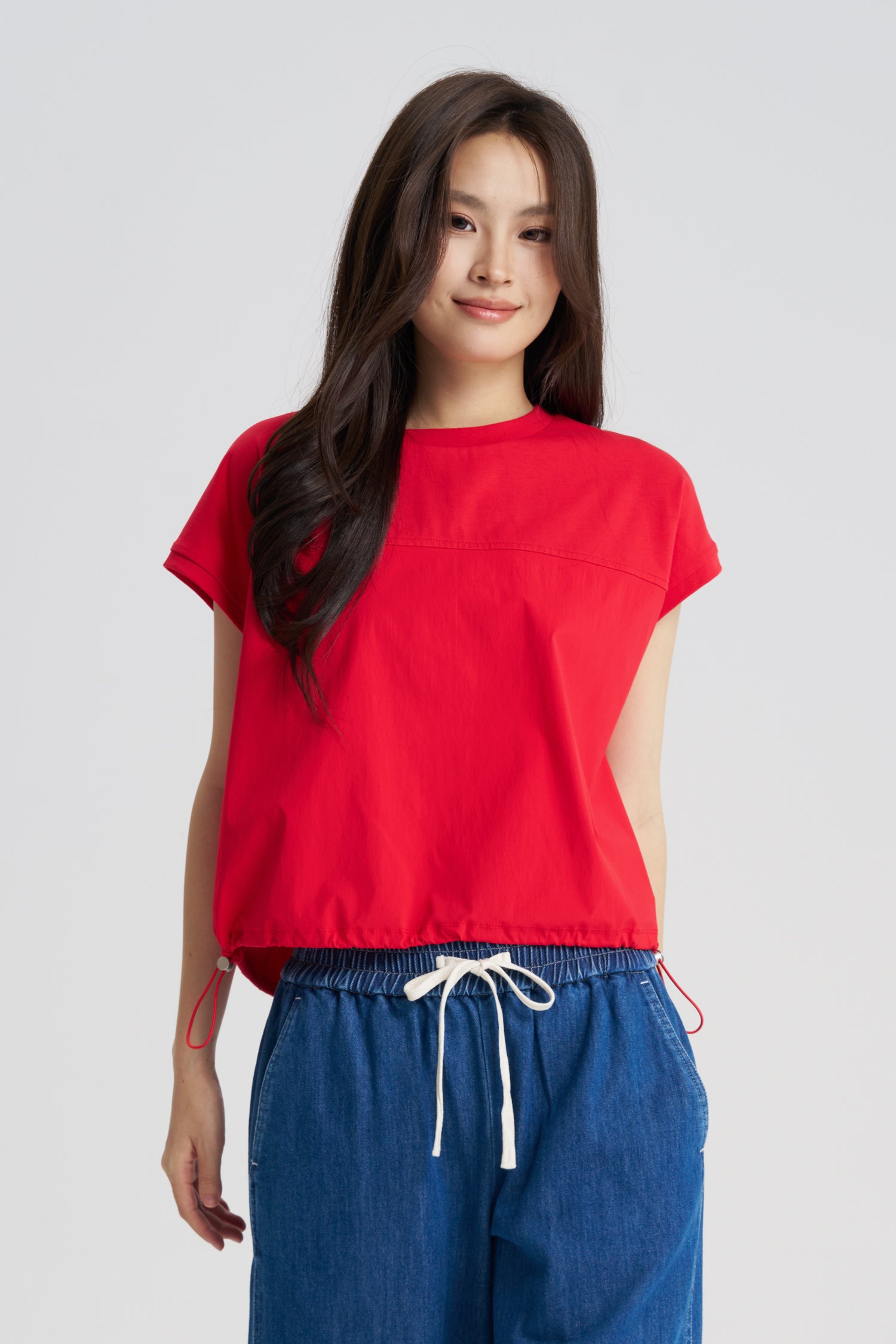 A combination of comfort and versatility with its blend of soft cotton and durable nylon fabric, this Drawcord Hem tee is a must-have addition to your wardrobe. The relaxed fit is enhanced by the adjustable drawcord at the hem, allowing you to customise the fit for a more tailored or relaxed look. With its effortless style and functional design, this piece is one to reach for time and again!