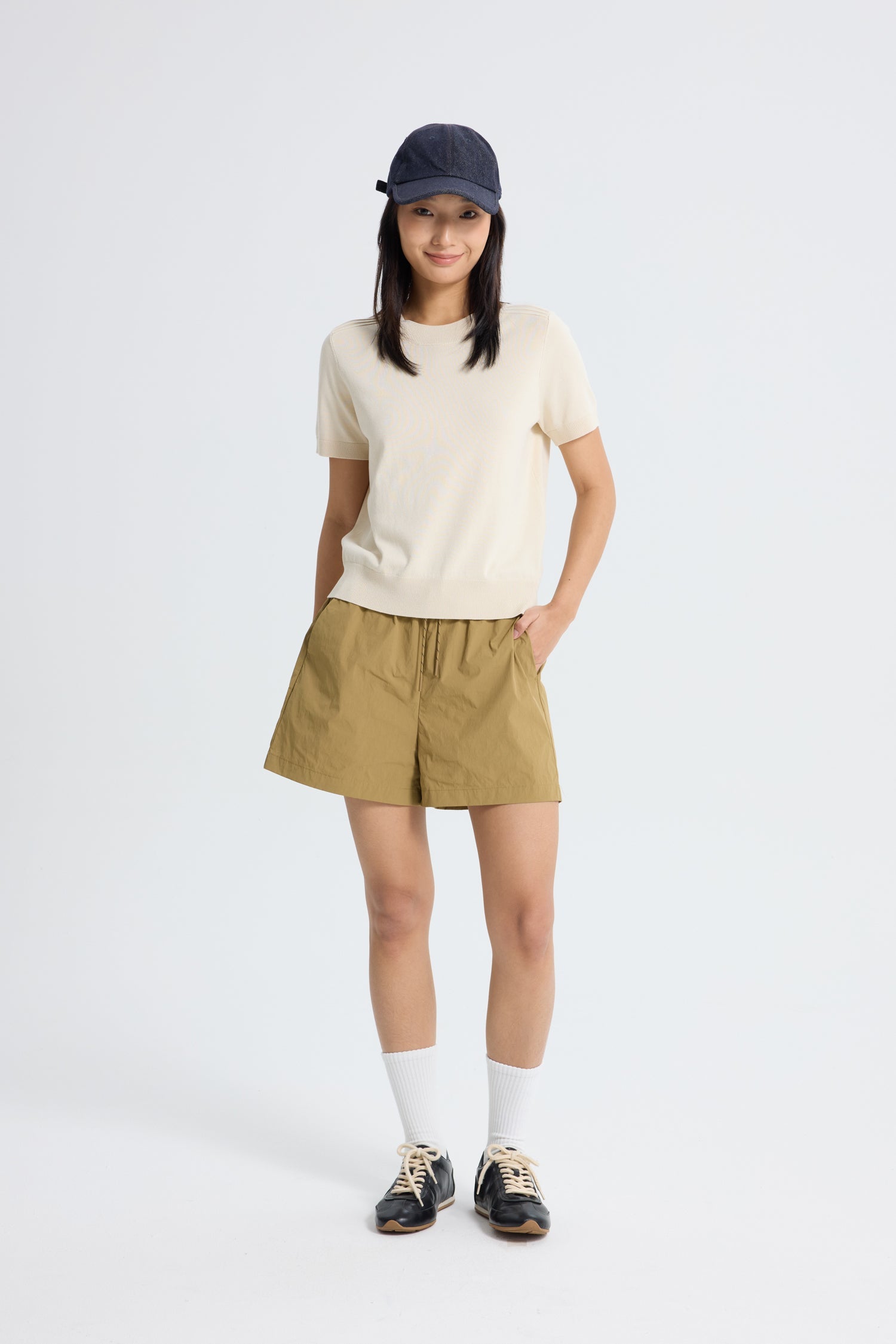 Effortlessly casual yet refined, these drawcord shorts are designed with comfort and versatility in mind. Cut with a relaxed silhouette, they feature an adjustable drawstring waist for a customisable fit. Crafted from lightweight nylon fabric, the style transitions easily from laid-back weekends to active days out. Pair it with our Colourblock Panel Blouse for an elevated sporty ensemble.