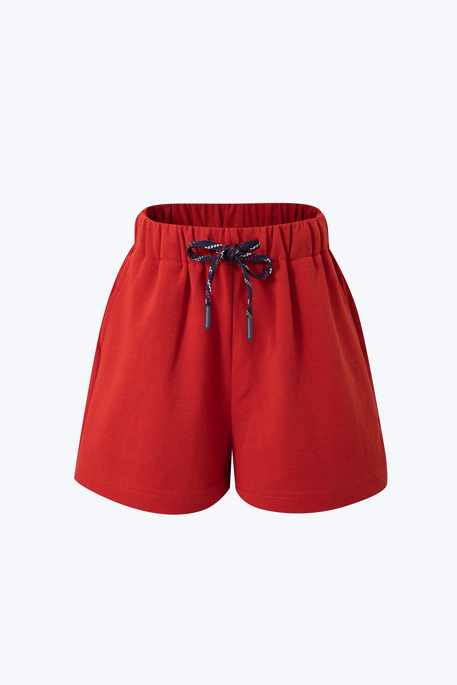 Comfortable kids shorts with elastic waistband, drawstring detail, side pockets, and a playful apple embroidery, perfect for everyday wear and casual adventures.