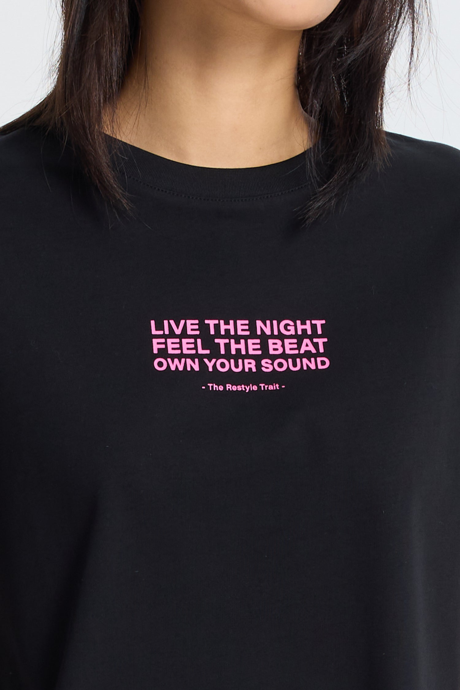 A bold tee designed to boost your energy——featuring a graphic statement that captures self-expression and movement. The clean silhouette and classic crew neckline balance its graphic impact, while the 100% cotton construction ensures softness, breathability, and all-day comfort. A wardrobe essential with an edge, perfect for nights out or casual styling.