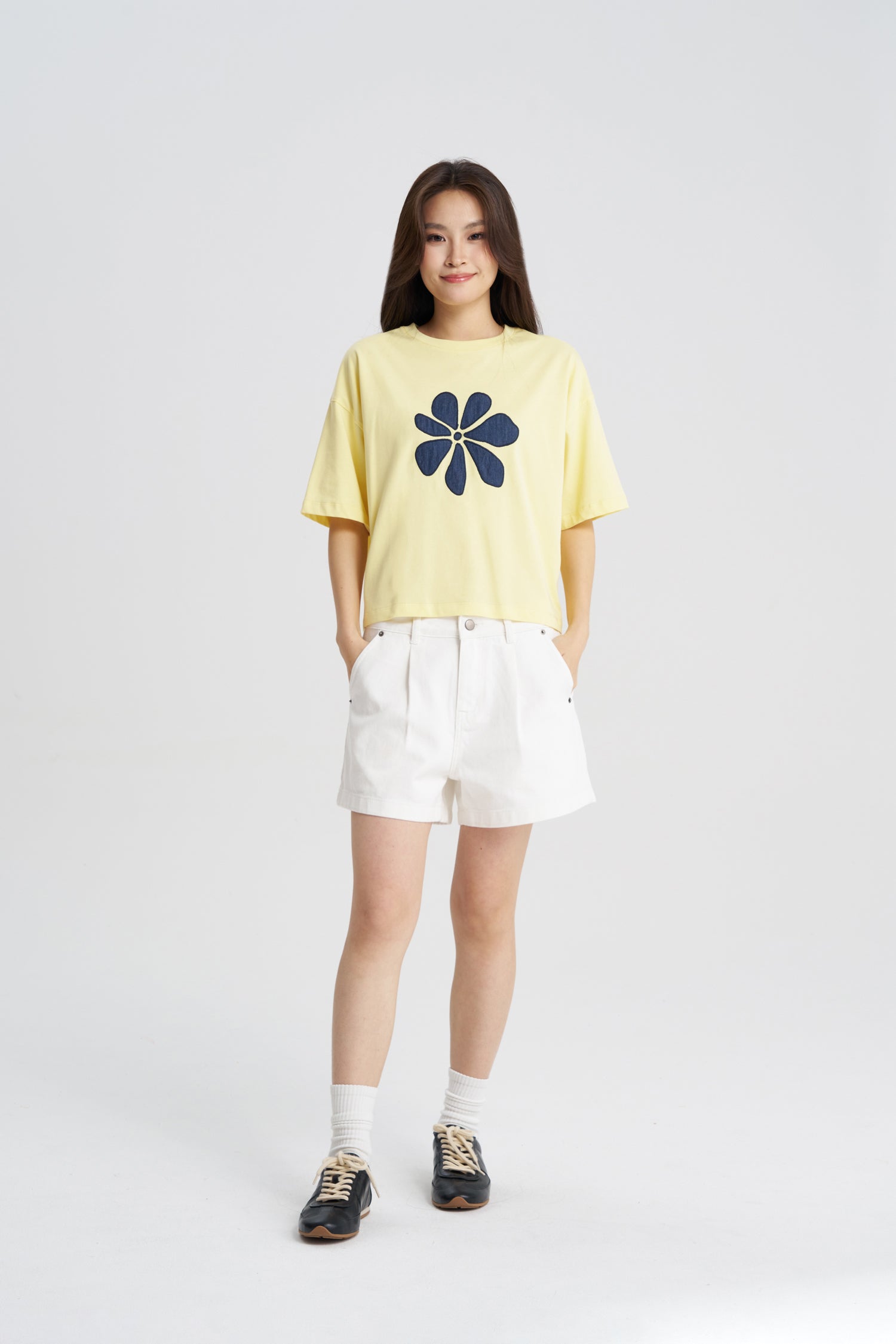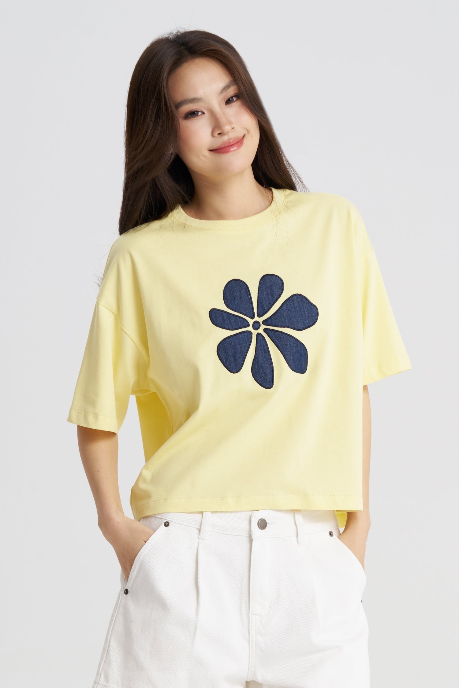 Meet your new wardrobe staple: the Floral Appliqu?? Tee, where buttery-soft comfort meets artful design. This classic crewneck is elevated with a beautiful, textured floral appliqu??, that provides a timeless finish that feels both fresh and familiar. It?€?s the effortless way to add a touch of feminine charm to any outfit, perfect for pairing with your favourite jeans for a look that?€?s as easy to wear as it is unforgettable.