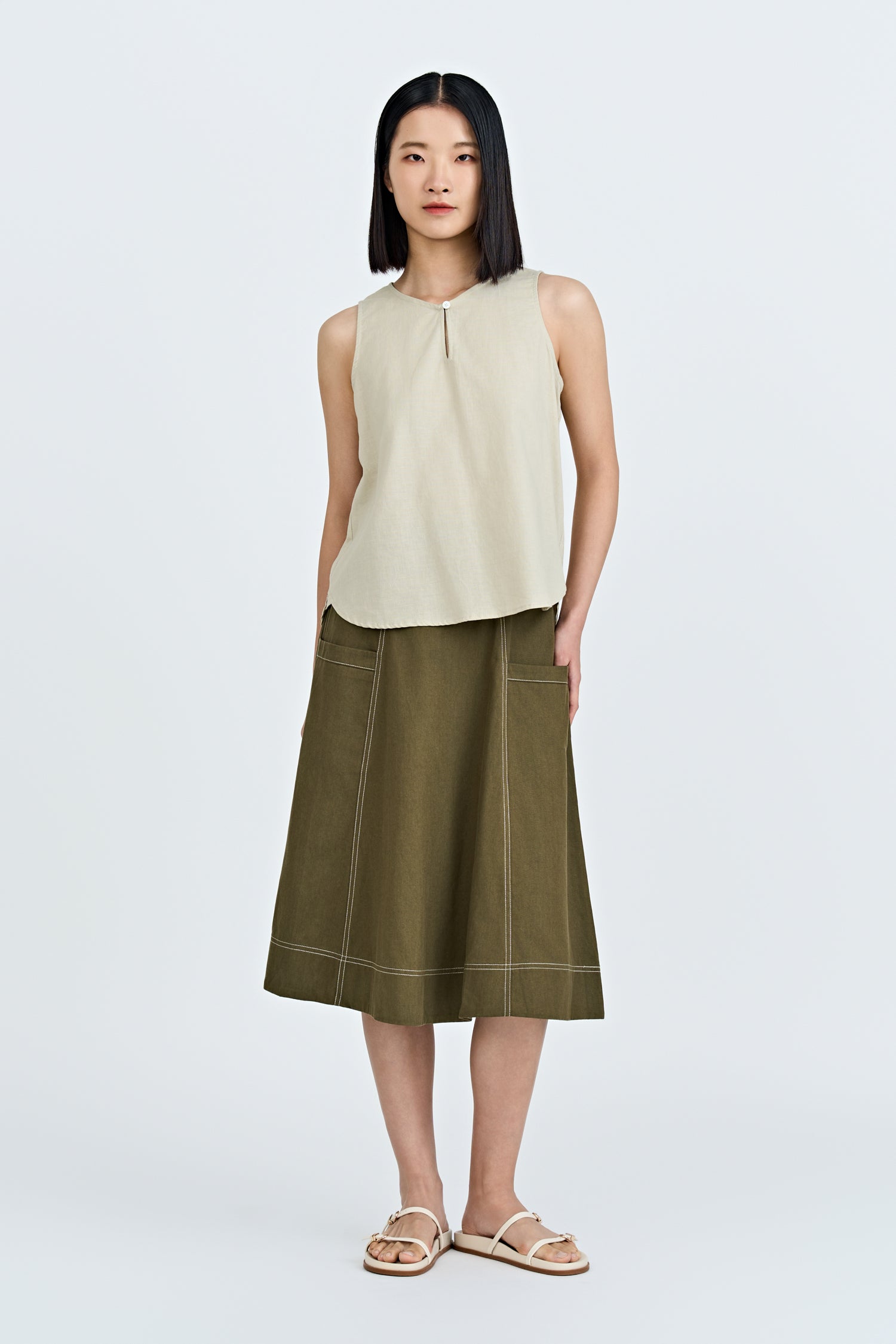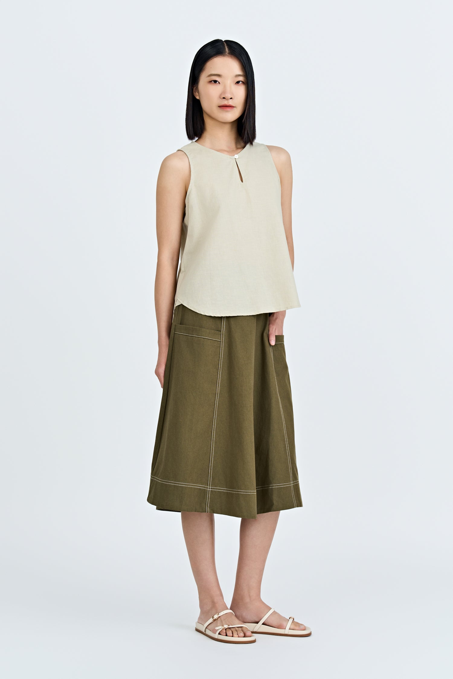 Featuring a clean, round neckline, it offers a timeless silhouette that flatters effortlessly. Its boxy fit adds a contemporary edge, creating a relaxed yet structured look that drapes beautifully on any body type. Perfect for layering or wearing solo, this top transitions seamlessly from casual to sophisticated, making it a go-to piece for both work and play.