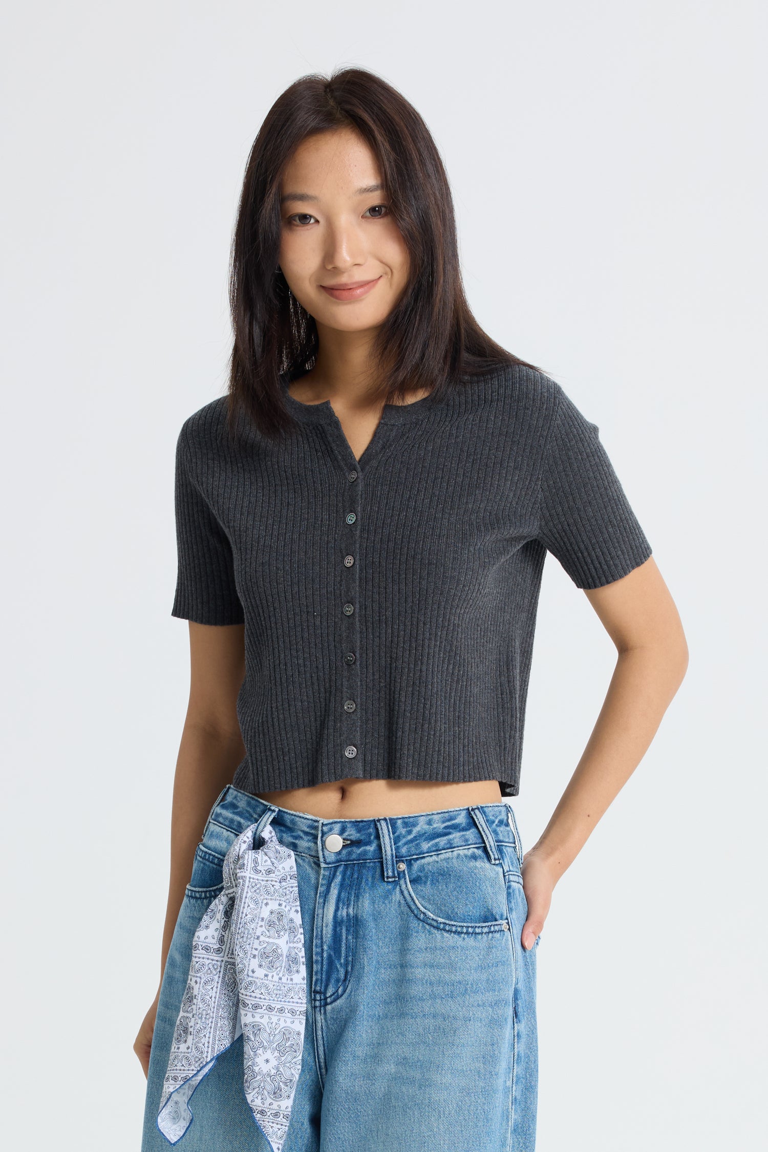 Introducing the Knitted Button Front Top, a charming blend of casual comfort and sophisticated style. This top features short sleeves and a ribbed body, offering a flattering fit that accentuates your silhouette. The button front detail adds a touch of refinement, allowing for versatile styling options. Crafted from soft, knitted fabric, it ensures all-day comfort and ease of movement.
