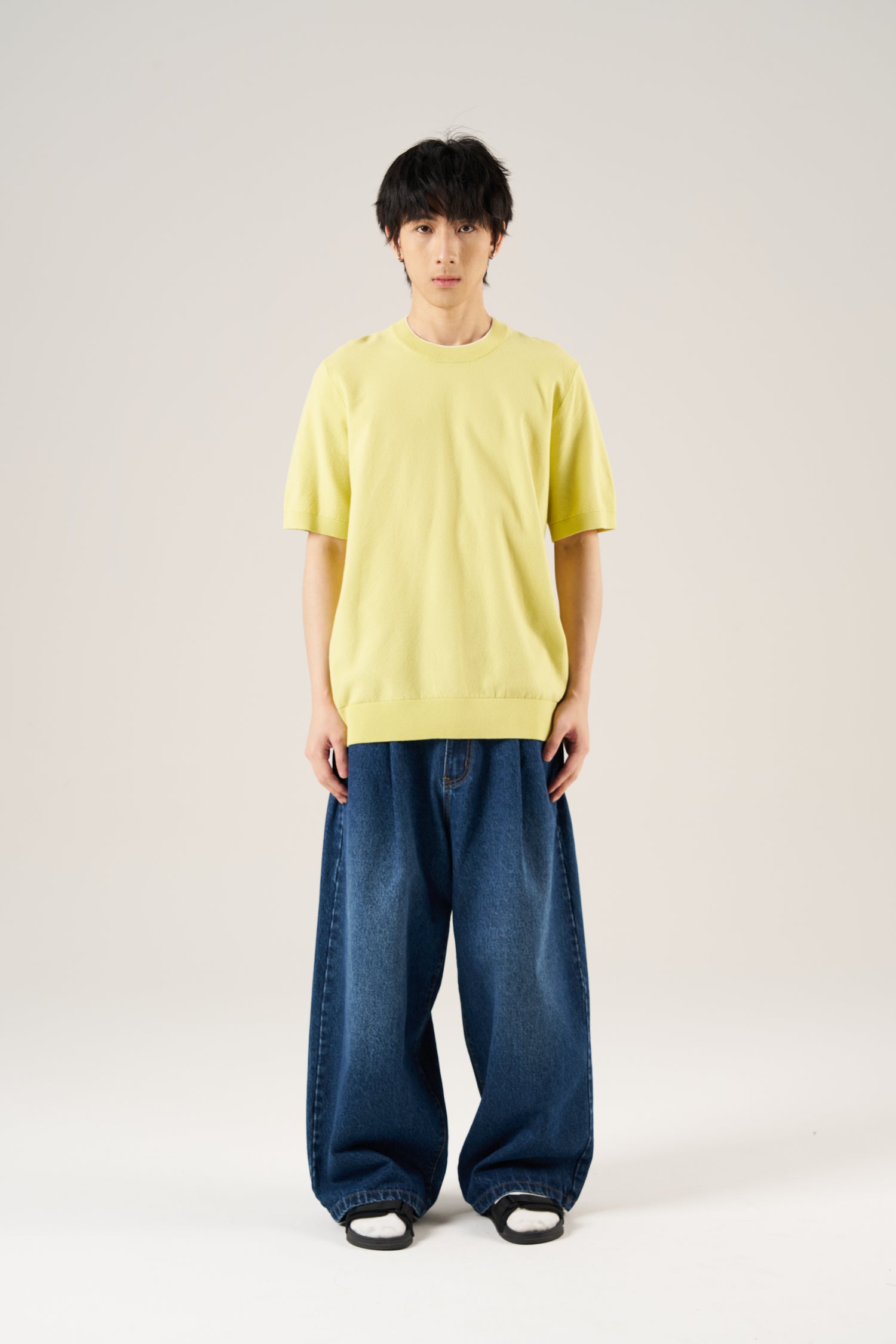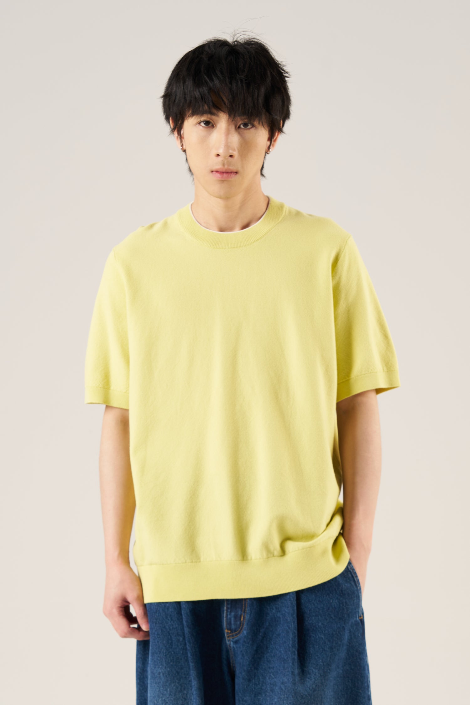 Knitted Contrast Trim Top - Chartreuse