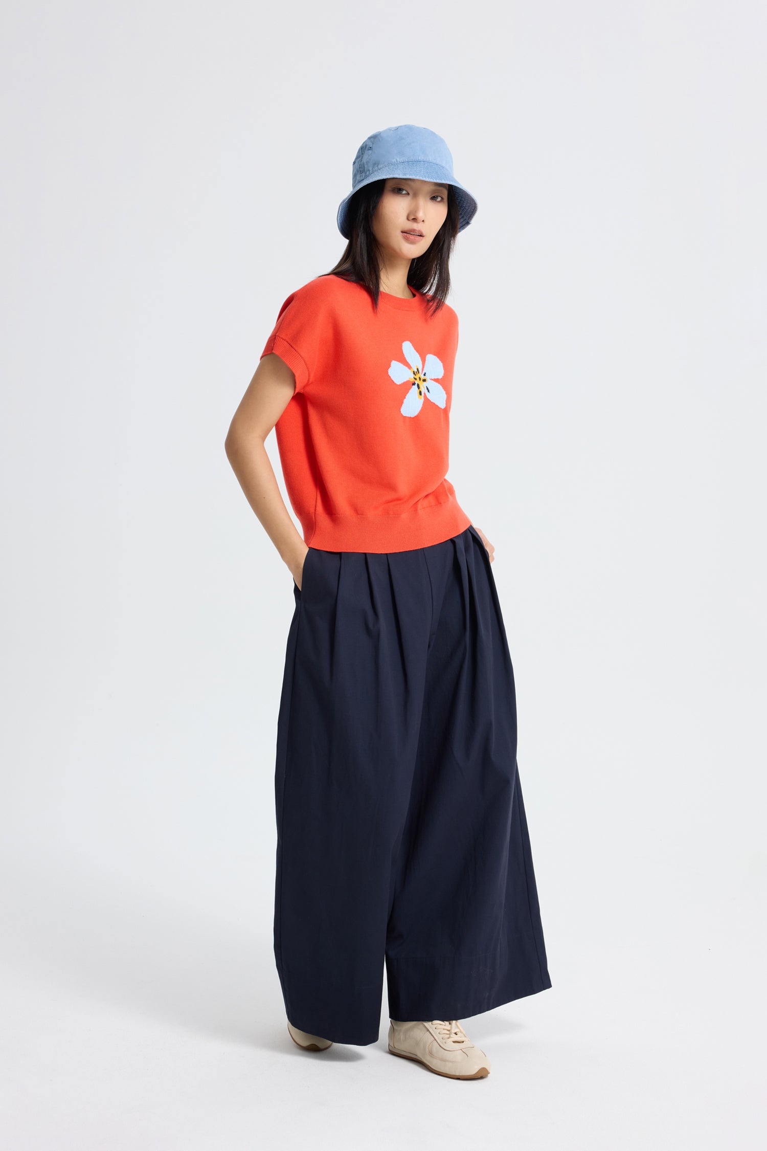 Welcome spring in style with our Knitted Floral Top, the perfect blend of comfort and charm. Featuring a delicate floral pattern woven into a soft, lightweight knit, this top brings a fresh, feminine touch to your seasonal wardrobe. The breathable fabric makes it ideal for layering or wearing on its own during warmer days, while the flattering fit adds a polished finish to any look. Pair it with your favourite jeans or a flowy skirt for an effortlessly pretty outfit that celebrates the season.