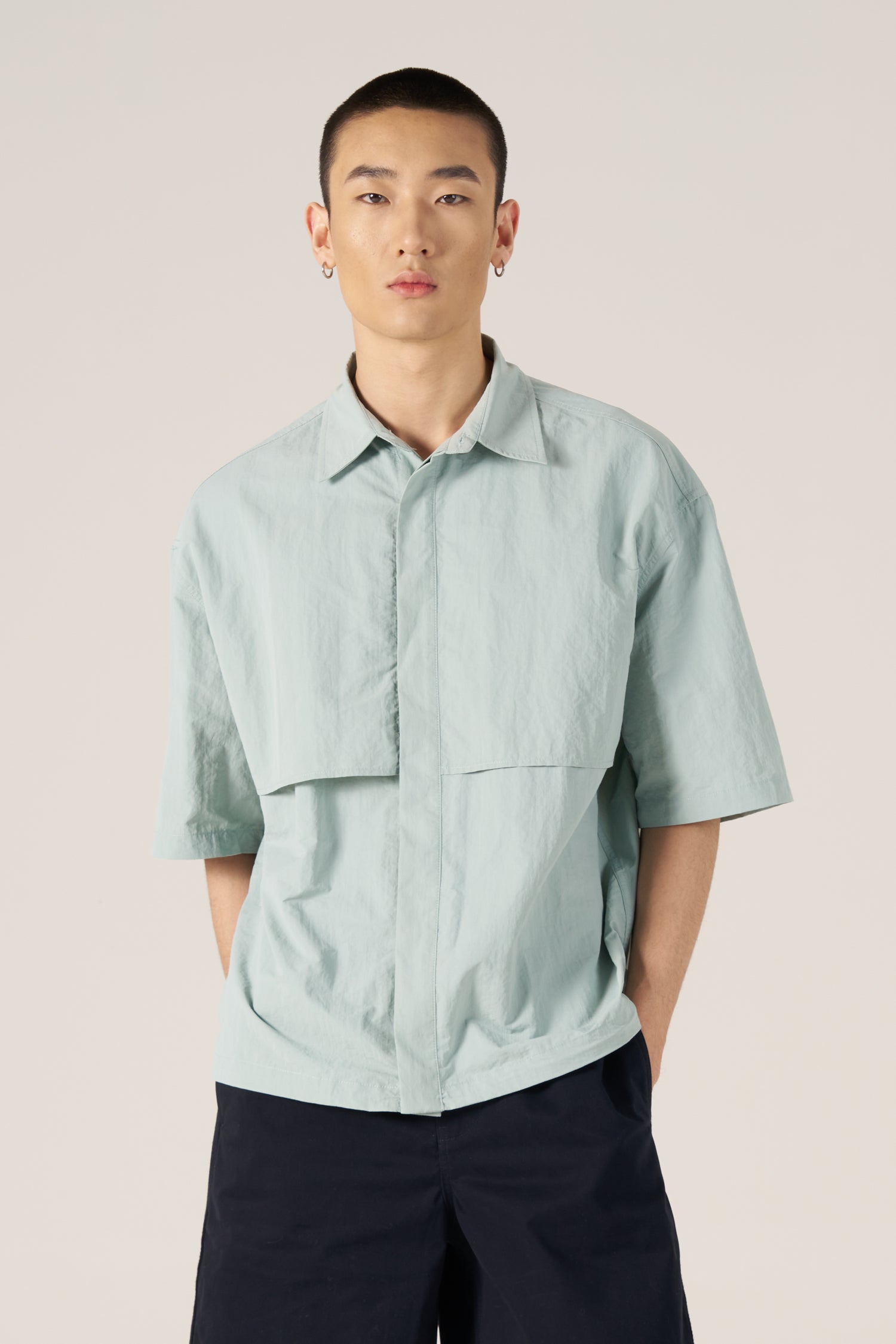 Layered Panel Shirt - Mint Grey