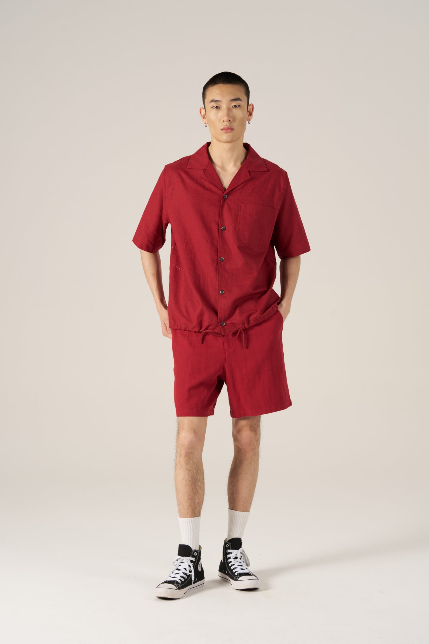 Crafted from a breathable linen-cotton blend, these regular-fit shorts feature an elastic waistband with interior drawstring for adjustable comfort.