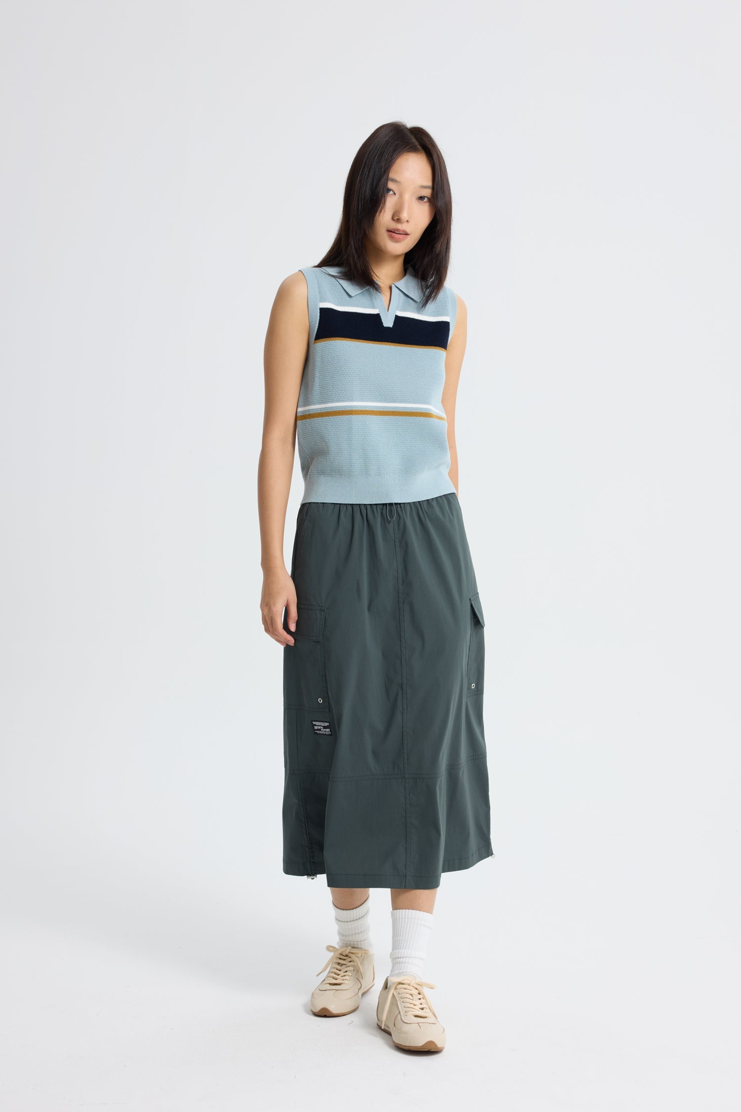 Elevate your wardrobe with this elegant multicolour stripe knitted vest. Crafted from a soft, mid-weight knit, it features a tailored sleeveless silhouette and a refined collared neckline for a touch of sophistication. The harmonious blend of muted and vibrant tones creates a striking yet tasteful striped pattern, offering visual interest without overpowering. Perfect for layering over a crisp blouse or styling on its own, this versatile piece transitions seamlessly from work to weekend with polished ease.