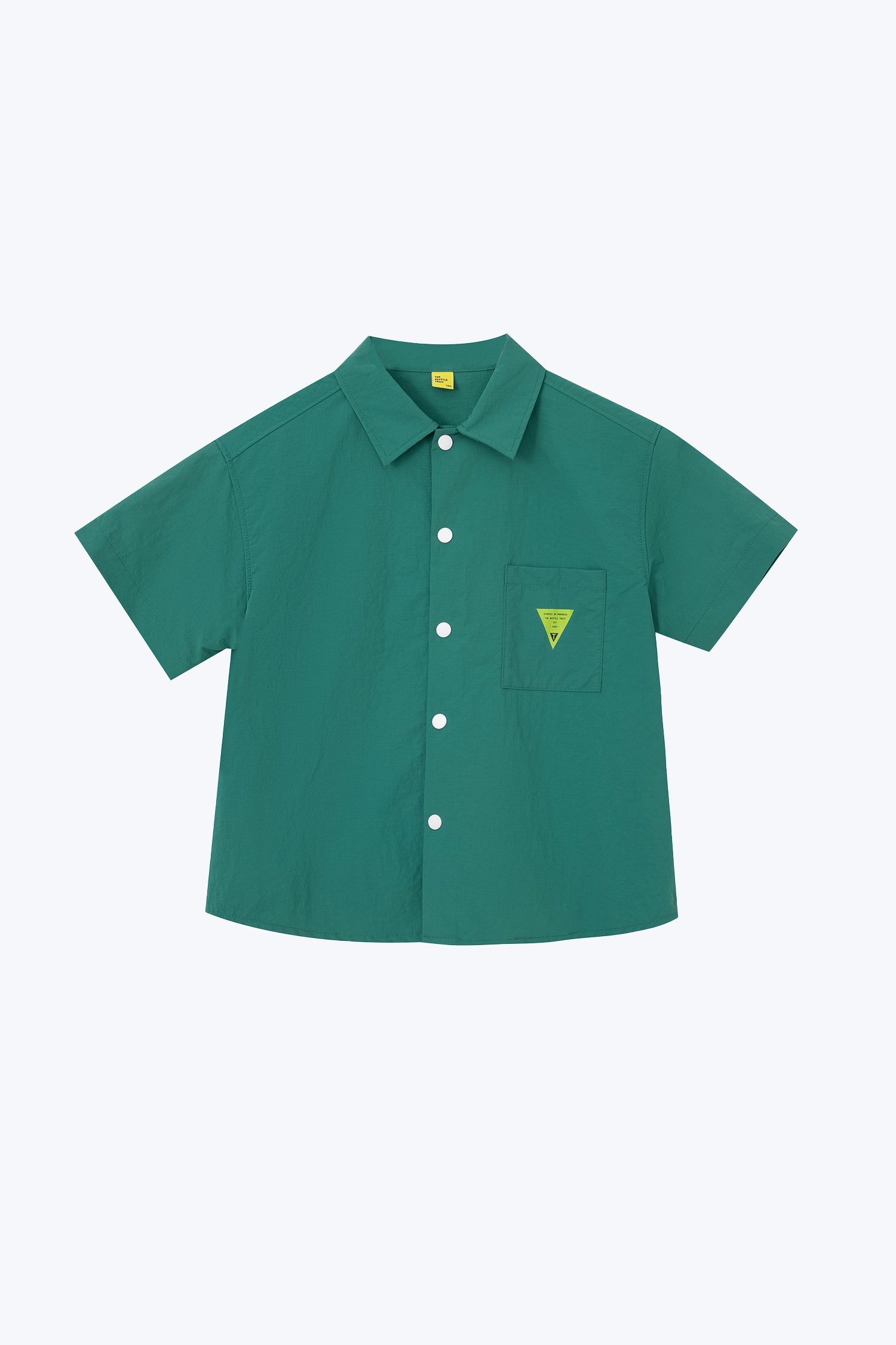 A lightweight nylon shirt with a relaxed fit, short sleeves, and a chest pocket featuring a subtle printed logo. Easy, stylish, and perfect for layering.