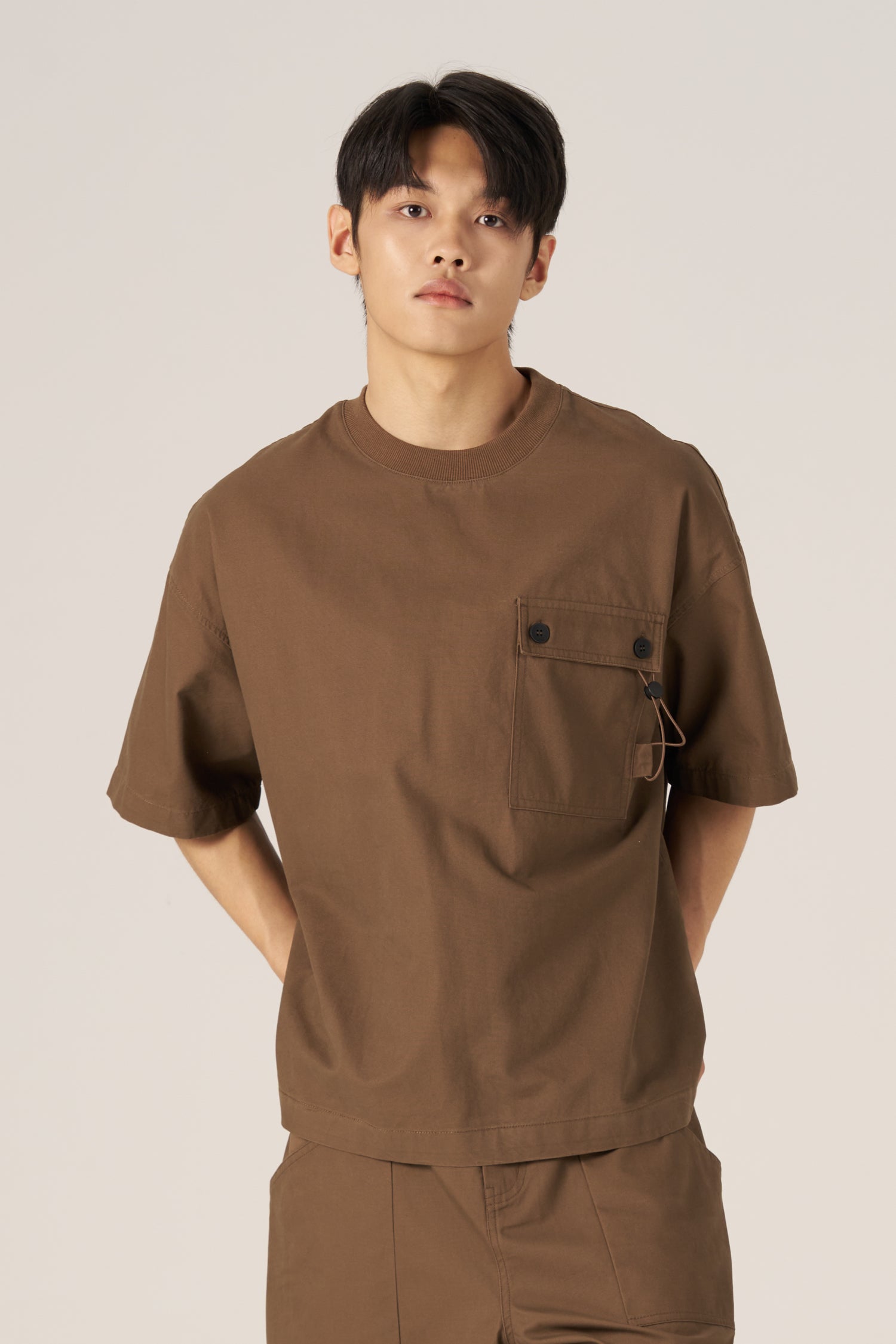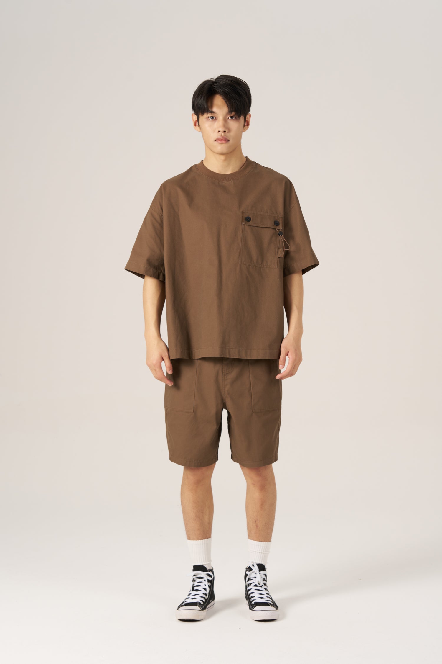 An oversized tee designed with a functional patch chest pocket for a utility-inspired look. Cut with relaxed proportions for easy layering and all-day comfort. Can be worn on its own or styled as a matching set with the coordinating shorts.
