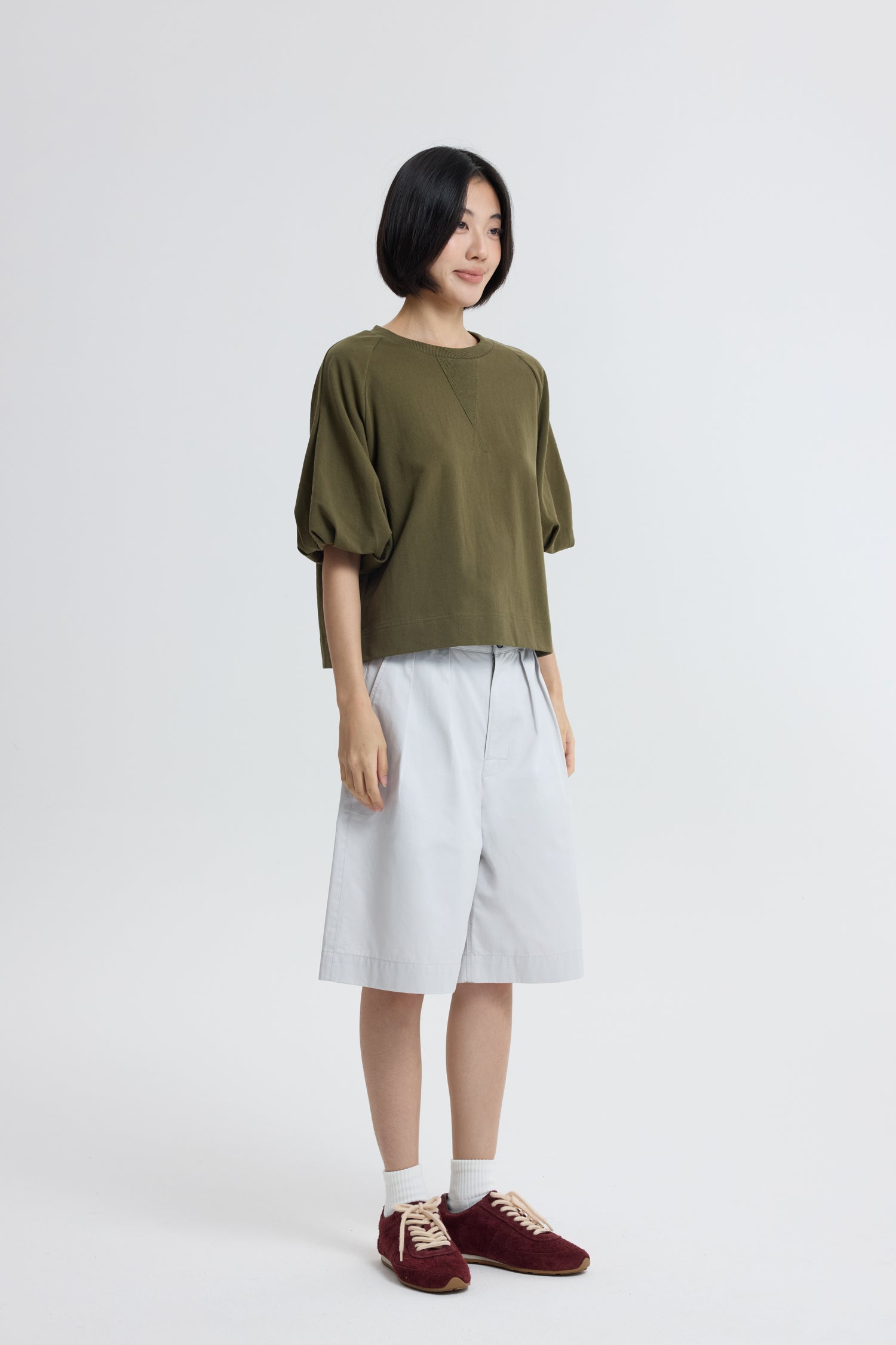 Tailored for effortless polish, these bermuda shorts feature crisp pleats and a structured silhouette that flatters and elongates. Designed with a high rise fit, they fasten with a clean two-button front for a refined, minimal look. The longer length offers a modern, modest touch — perfect for both smart-casual styling and laid-back weekends. Pair them with a tucked-in blouse or relaxed tee for an easy, elevated outfit.