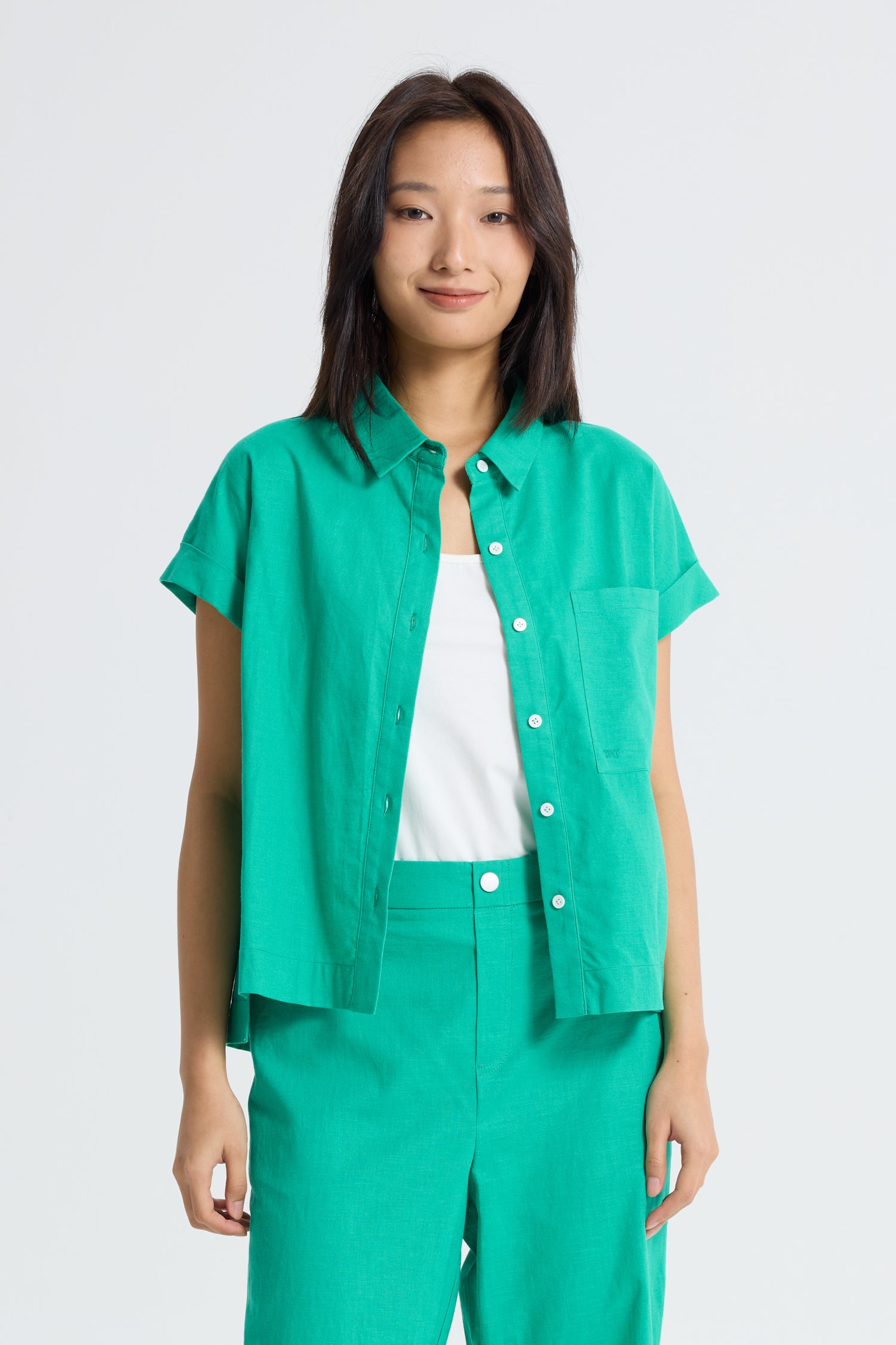 Roll Up Cuff Blouse - Jade