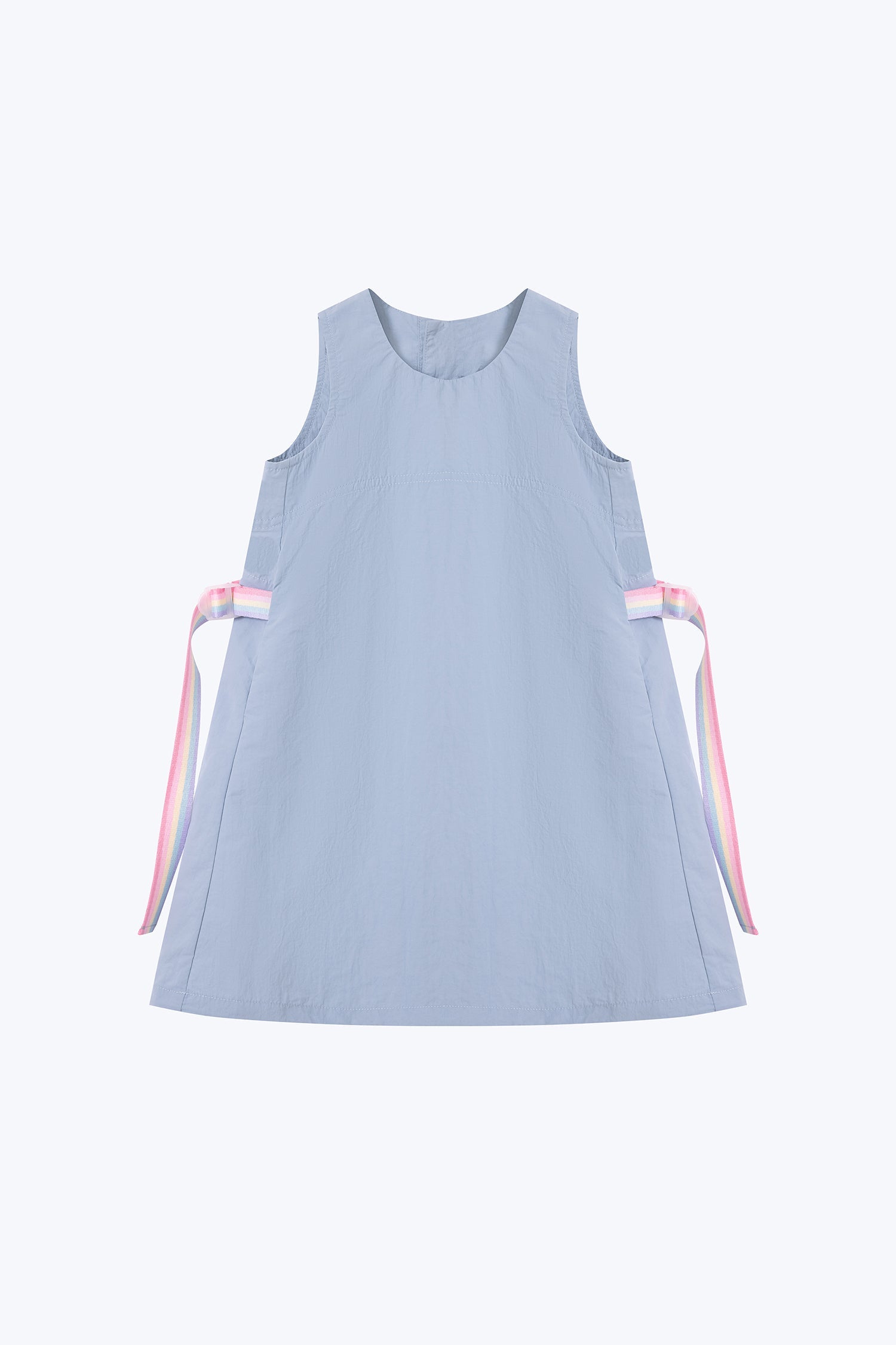 Simple yet stylish sleeveless dress for kids, crafted in lightweight fabric with playful rainbow ribbon side ties, perfect for casual days and cheerful outings.