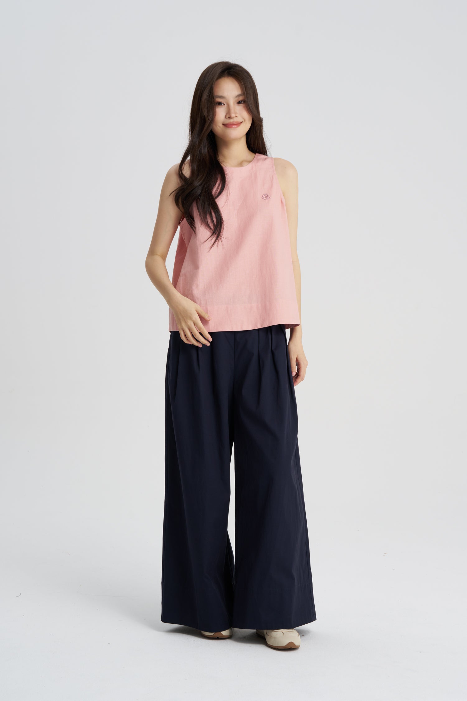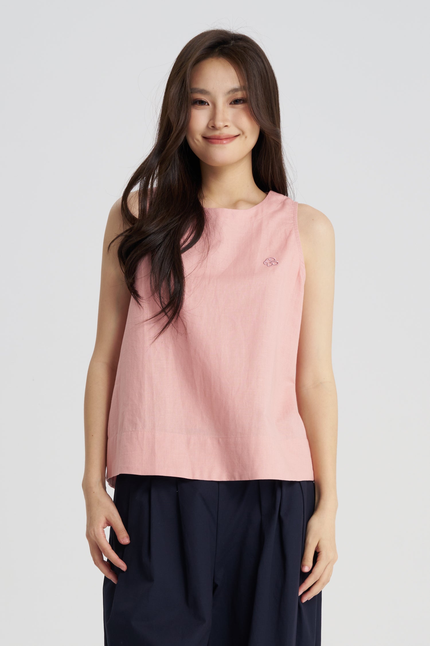 Easy to wear and incredibly lightweight, this top effortlessly pairs with your favourite skorts or a classic pair of jeans. Made from a breathable cotton-linen blend, it keeps you cool and comfy while looking effortlessly put-together. We love the little details, like the back collar snap buttons and a subtle slit at the hem, with the sleeveless cut makes it perfect for warm weather.