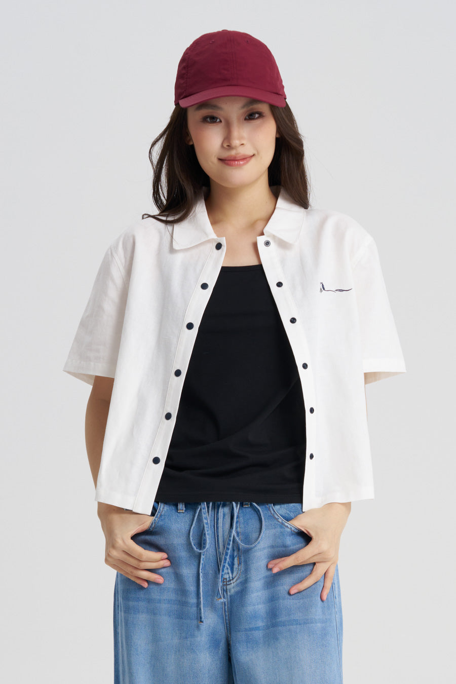 Meet your new mood-boosting classic. This solid linen blouse brings easy charm to your everyday lineup, featuring delicate embroidery that adds a touch of personality. The snap-button front gives it a modern twist, while the breathable linen keeps it effortlessly comfortable. Easy to dress up or down — it’s the kind of piece that makes getting dressed feel natural, stylish, and fun.