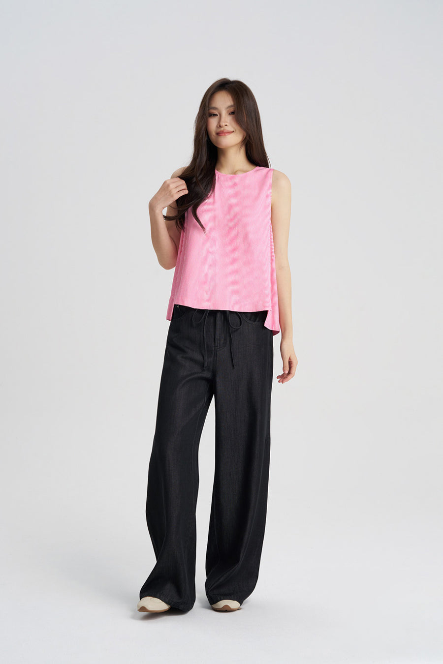 Keep it easy and stylish with this Striped Sleeveless Blouse. Lightweight and breezy, it drapes effortlessly for a relaxed fit, while the clean neckline and armholes give it a polished touch. Throw it on with your favourite jeans or shorts for weekend vibes, or pair it with casual skirts for a simple, everyday look.