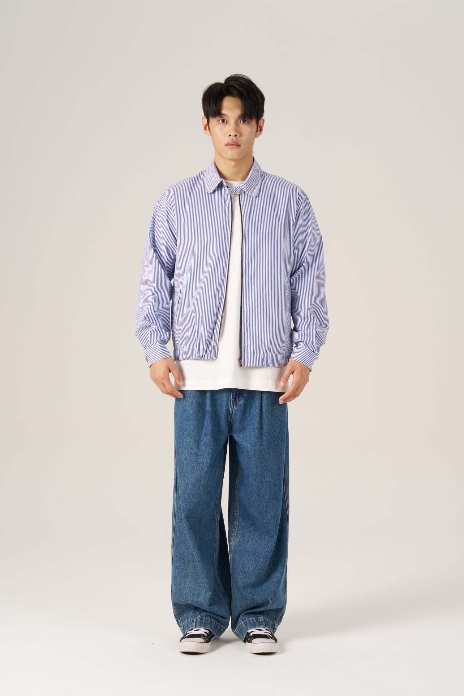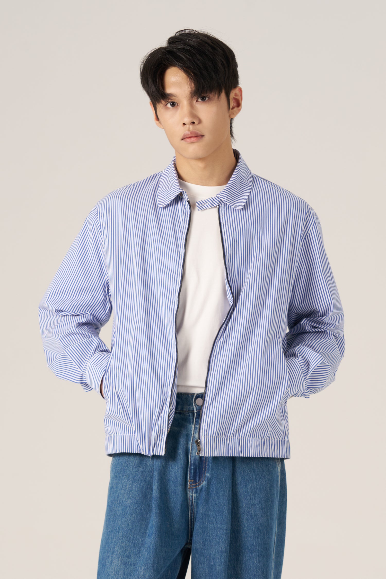 The Striped Zip Jacket delivers a clean urban look with its relaxed cut and bold stripe design. Crafted from a structured cotton-nylon blend, it's an easy everyday layer that works with anything from tees to cargos.