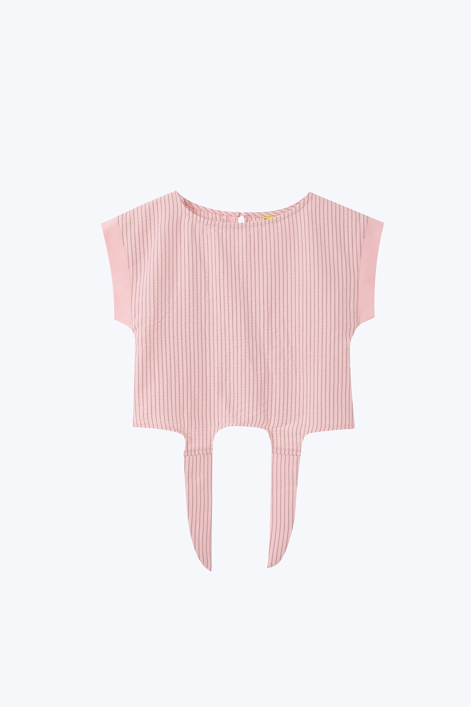 Playful yellow and blue striped crop top with a tie-front. Fun, playful, and perfect for sunny adventures.