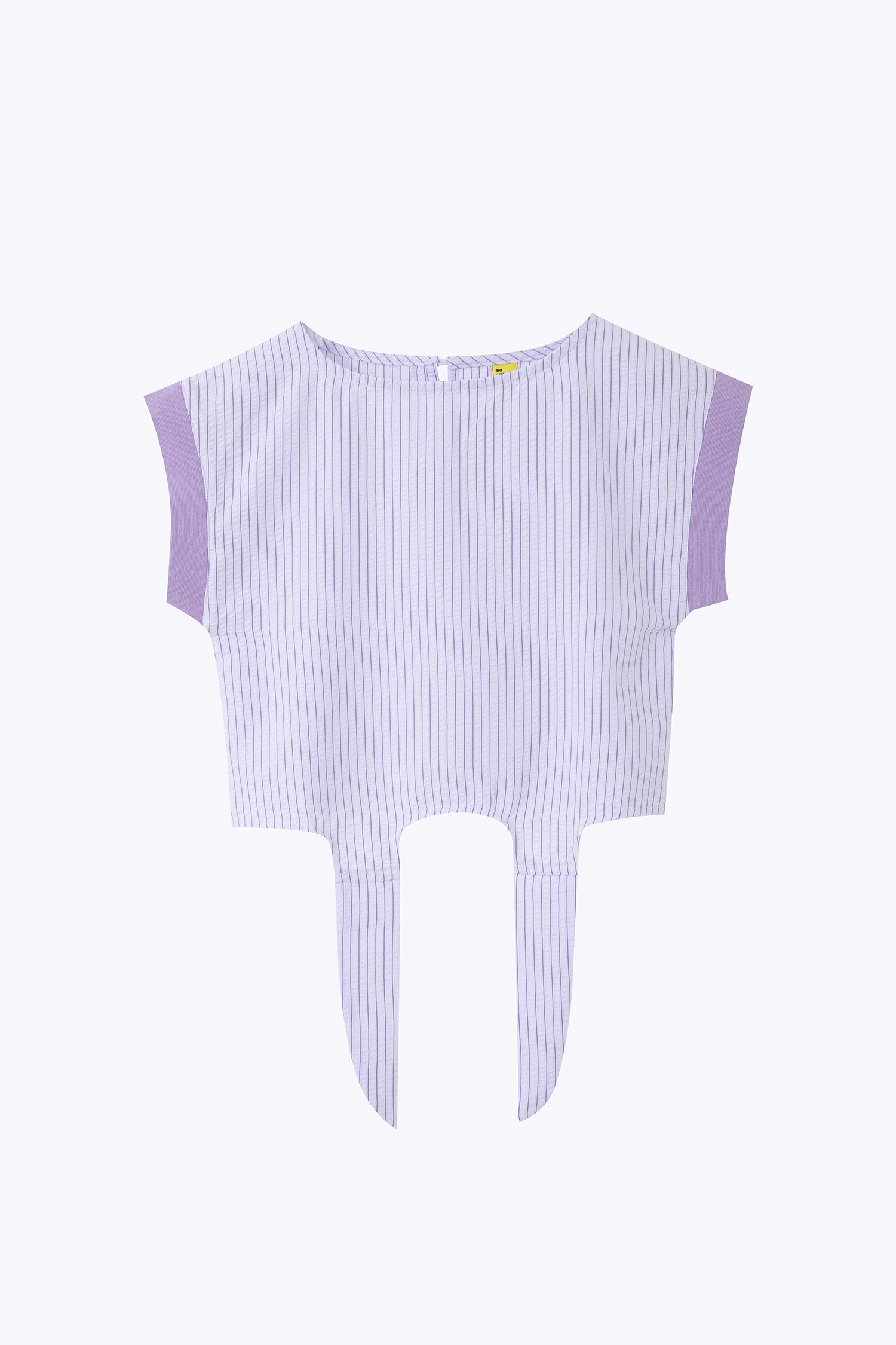 Playful yellow and blue striped crop top with a tie-front. Fun, playful, and perfect for sunny adventures.