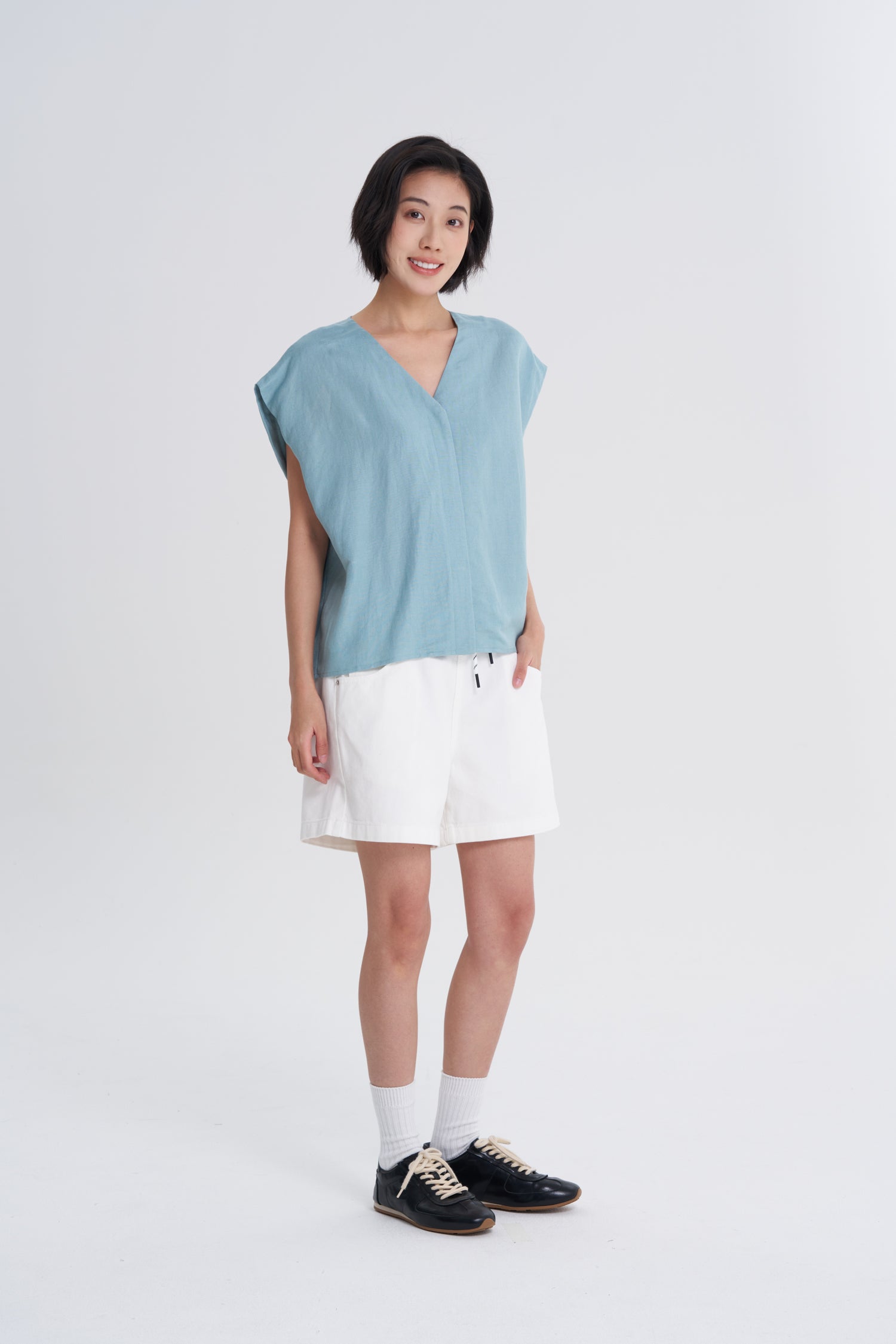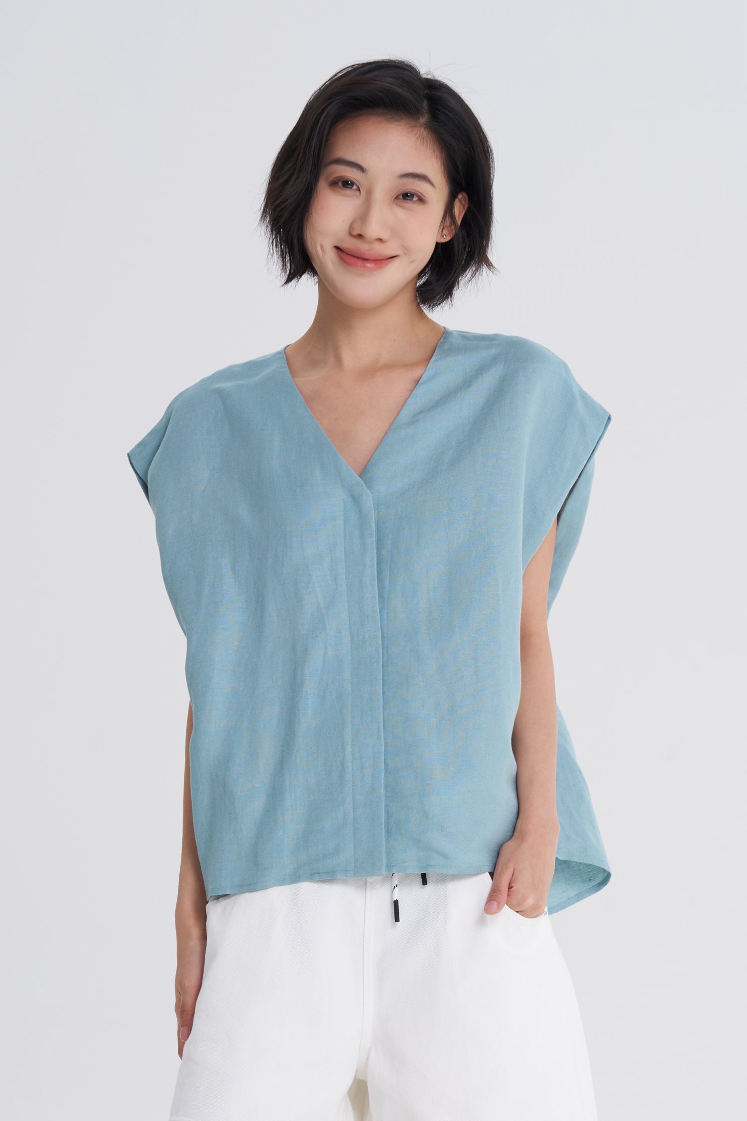 Effortless style meets everyday comfort in this minimalist V-neck blouse. The clean lines and precise, flattering neckline create a modern, versatile silhouette that works for any occasion. Crafted from breathable cotton-linen, it’s your perfect go-to for busy days, easily pairing with everything from your favorite jeans to tailored trousers for a look that’s both polished and perfectly uncomplicated.