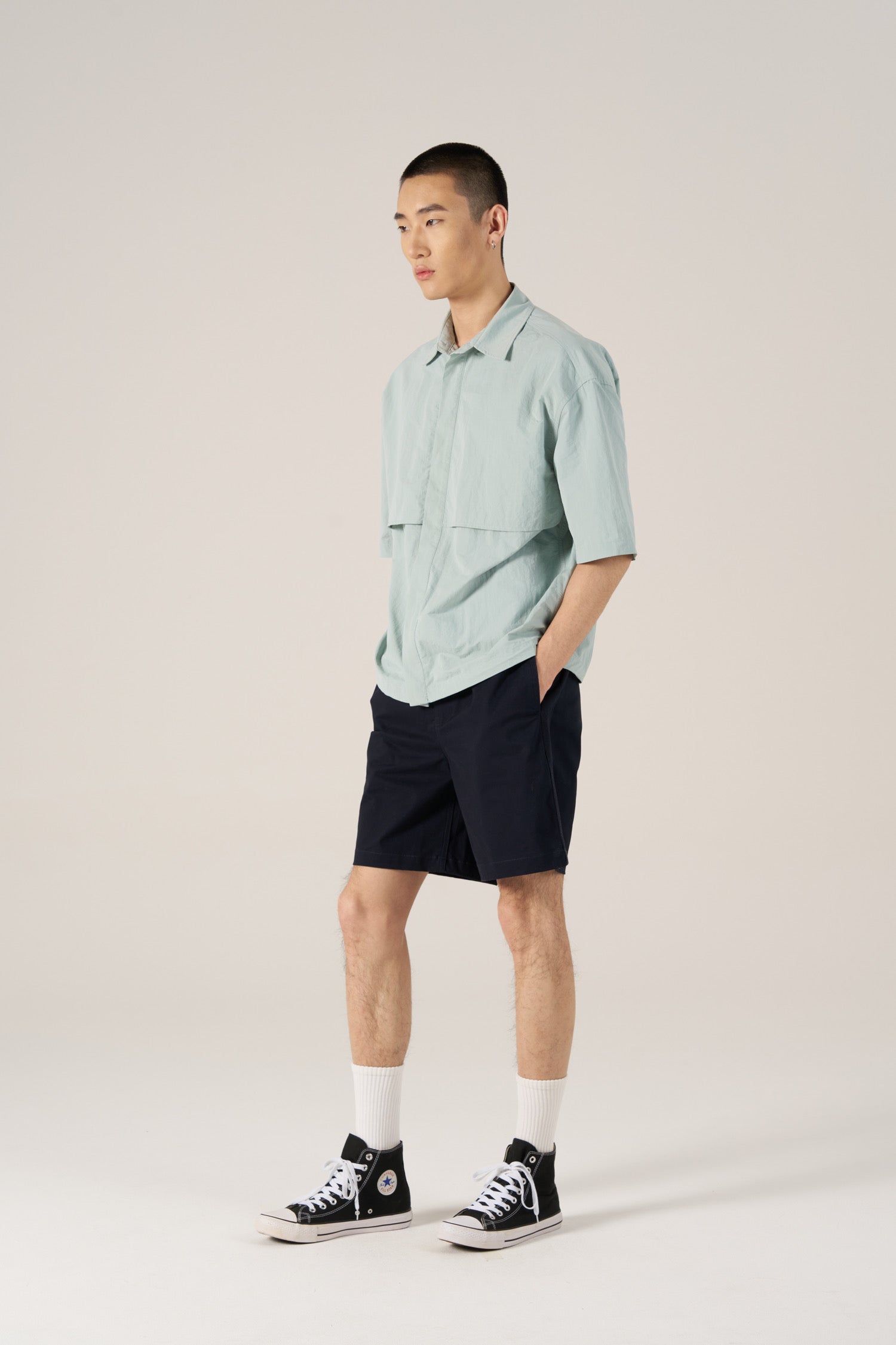 Relaxed shorts detailed with webbing trims along the side seams, adding a subtle utilitarian touch to the clean, everyday silhouette.